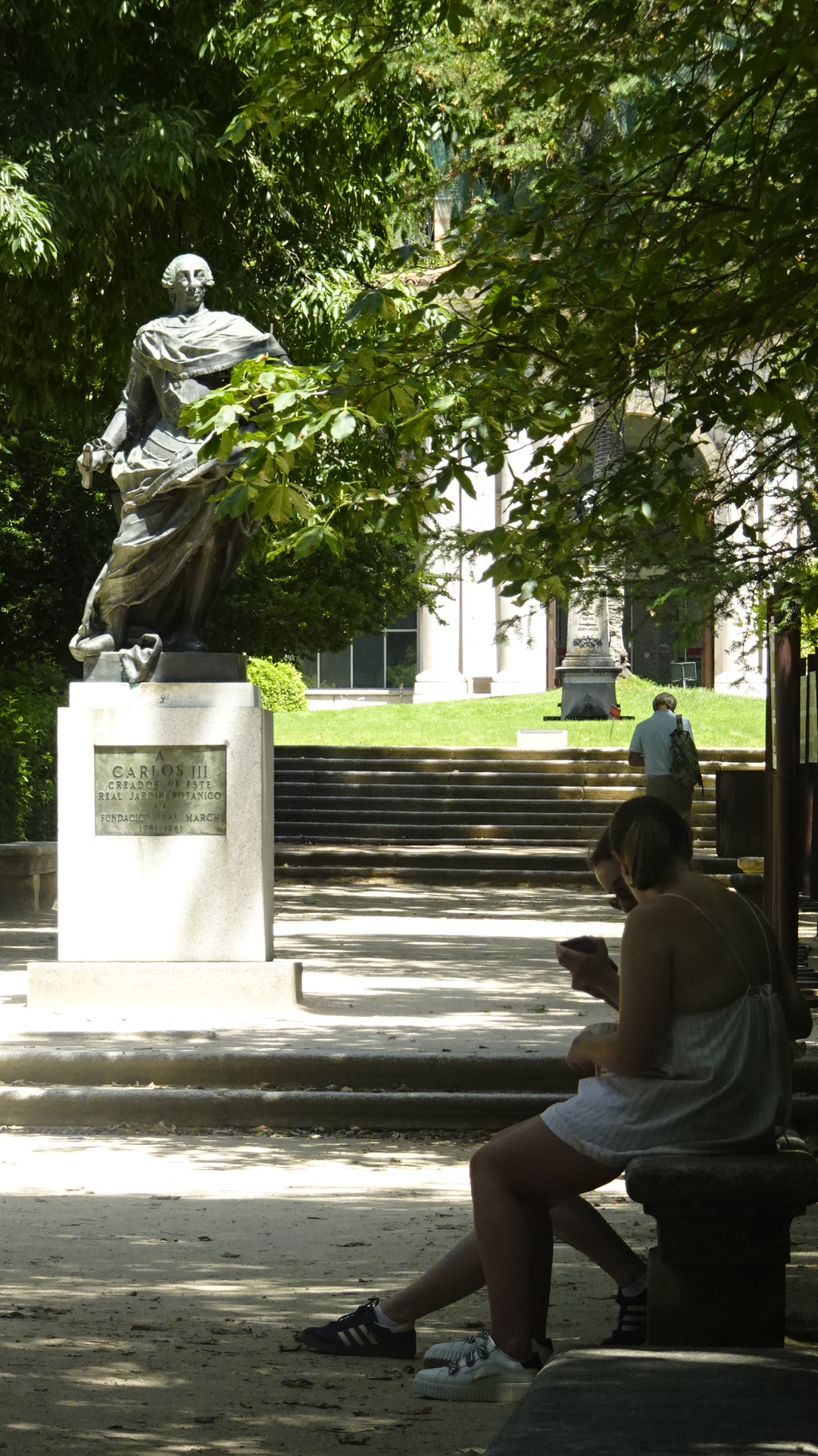 Carlos III , detalle de su estatua de cuerpo entero. Jardín Botánico de Madrid. Foto R. Puig