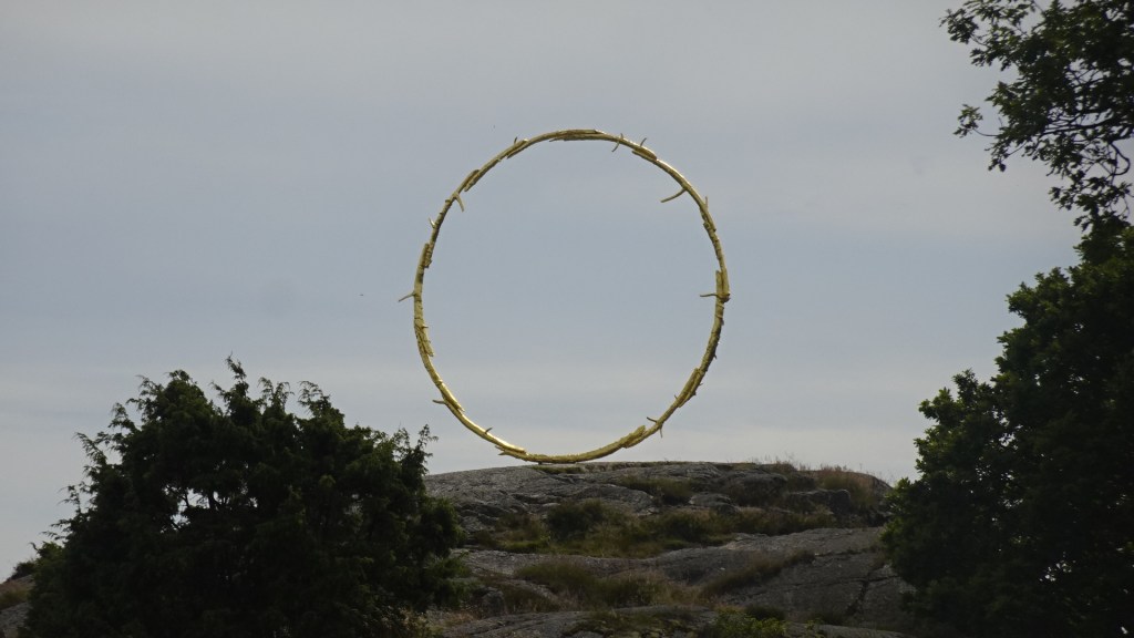 Tras ejercitar las piernas por los roquedales de Pilane en la isla de Tjorn, nos fuimos a dar un baño en una playa al sur de Gotemburgo, no sin dejar antes un acertijo para ver quién adivina lo que representa esta obra de la escultora sueca Moa Israelsson(*)…