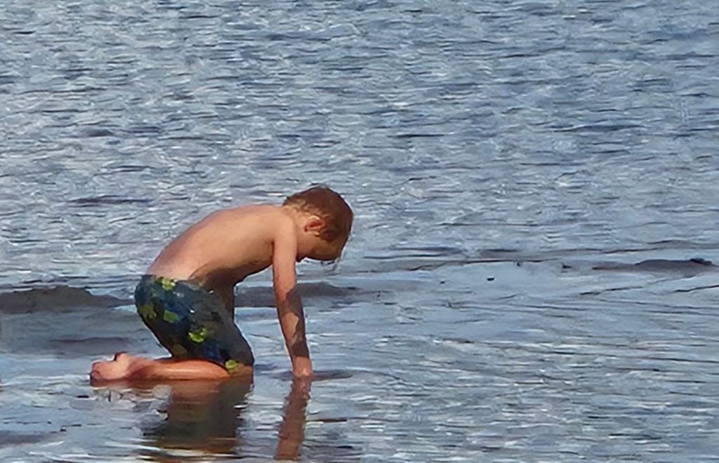 Pero en esta playa son los niños quienes se entretienen jugando con el cubo y la pala