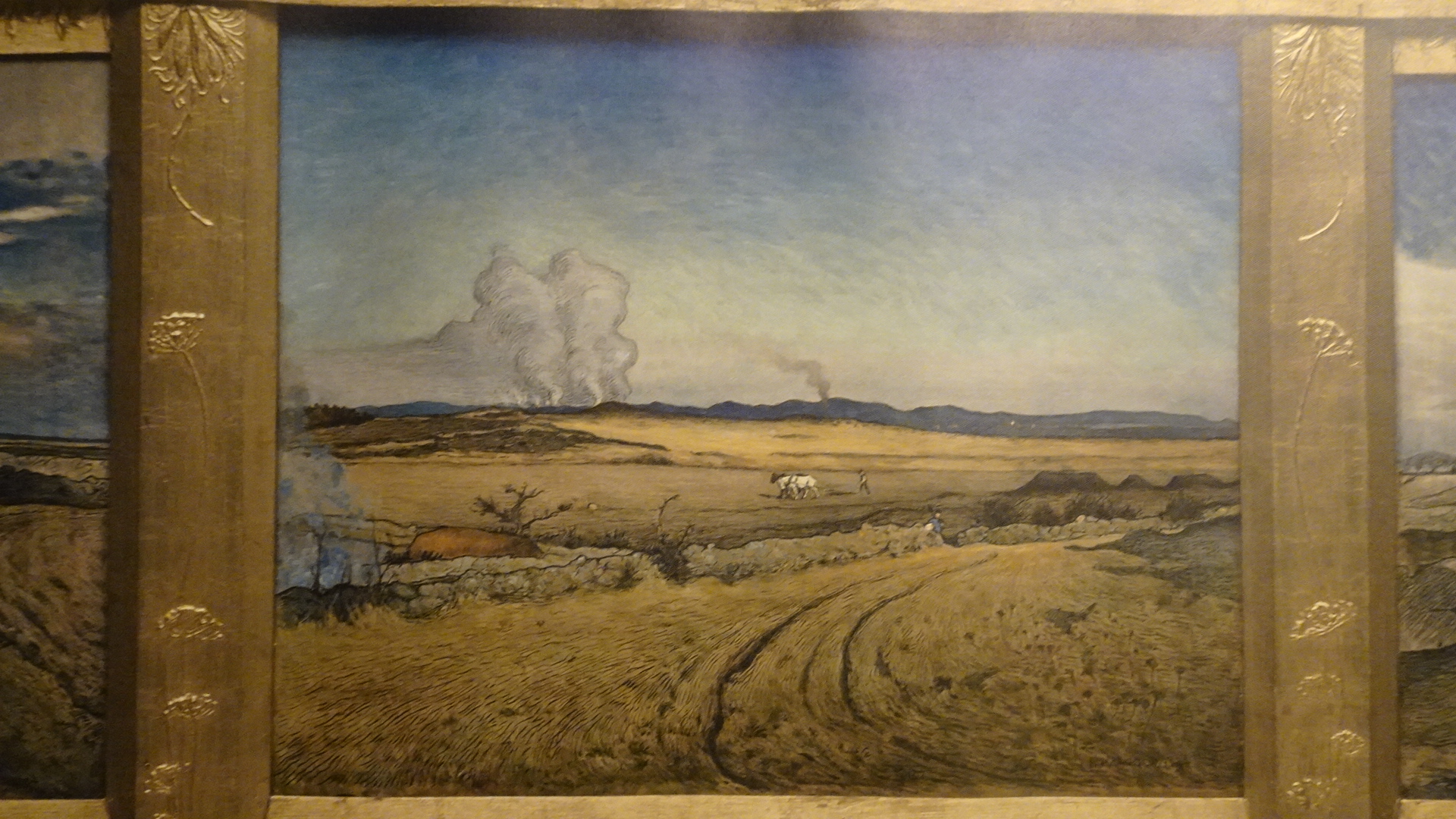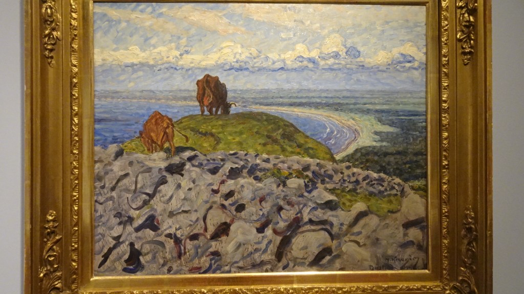 Nils Kreuger, Primavera en Halland, 1894, óleo sobre lienzo (centro del tríptico). Foto R. PuigDetalle del mismo lienzo. Foto R.PuigNils Kreuger, Escuela de Varberg,1895, óleo sobre lienzo. Foto R. PuigNils Kreuger, Playa en Halland,1893, óleo sobre lienzo. Foto R. PuigRichard Bergh, El caballero y la doncella, 1897. Óleo sobre lienzo (Museo de Bellas Artes de Gotemburgo)Otra forma de arte: un cartel de los años 50 anunciando los ciclomotores Monark de la fábrica de Varberg. Foto R. Puig
