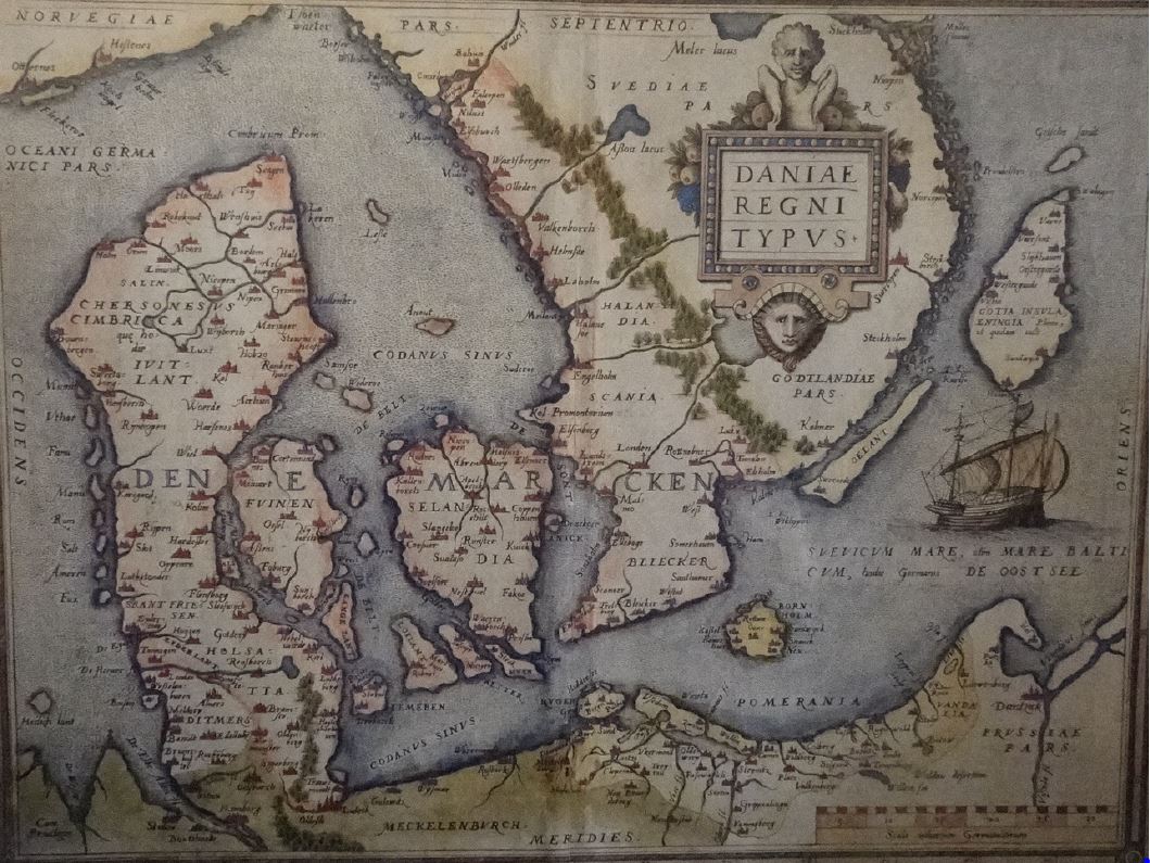Mapa del Reino de Dinamarca en el siglo XVI. Museo de Arte y Cultura de Halland, Varberg.