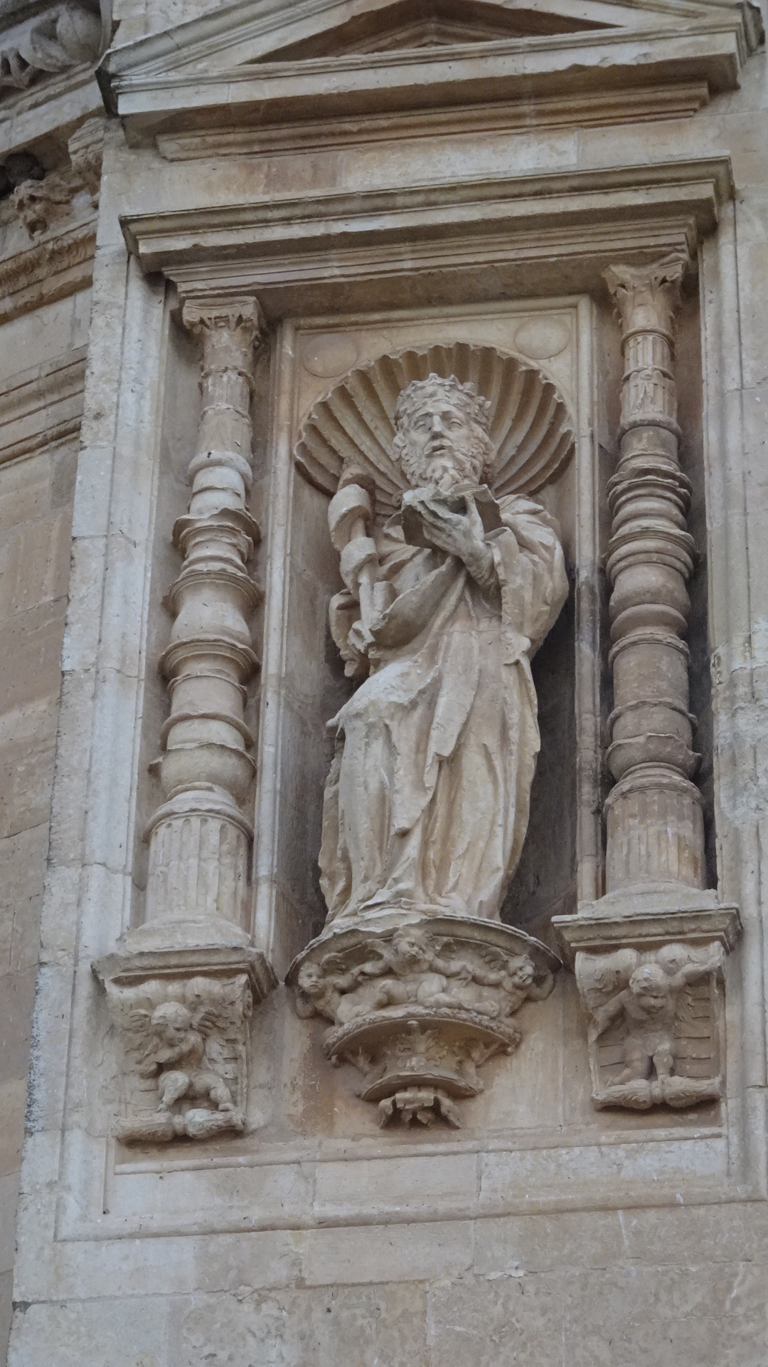 Cruz de Santiago en la fachada posterior del monasterio. Foto R. PuigEl Rey David en la misma fachada renacentista. Foto R.Puig¿El Rey Salomón? Foto R. Puig