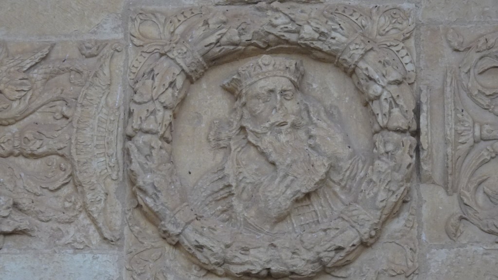 Hoy lo mantiene una fundación que gestiona las visitas y organiza eventos y celebraciones culturales. La tarde de nuestra llegada habíamos paseado alrededor de sus muros renacentistas donde destacan magníficos medallones y hornacinas platerescas con emblemas, figuras y personajes históricos y bíblicos.