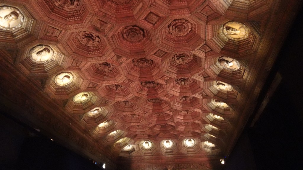 Busto de apariencia femenina en el artesonado del refectorio. Foto R.Puig