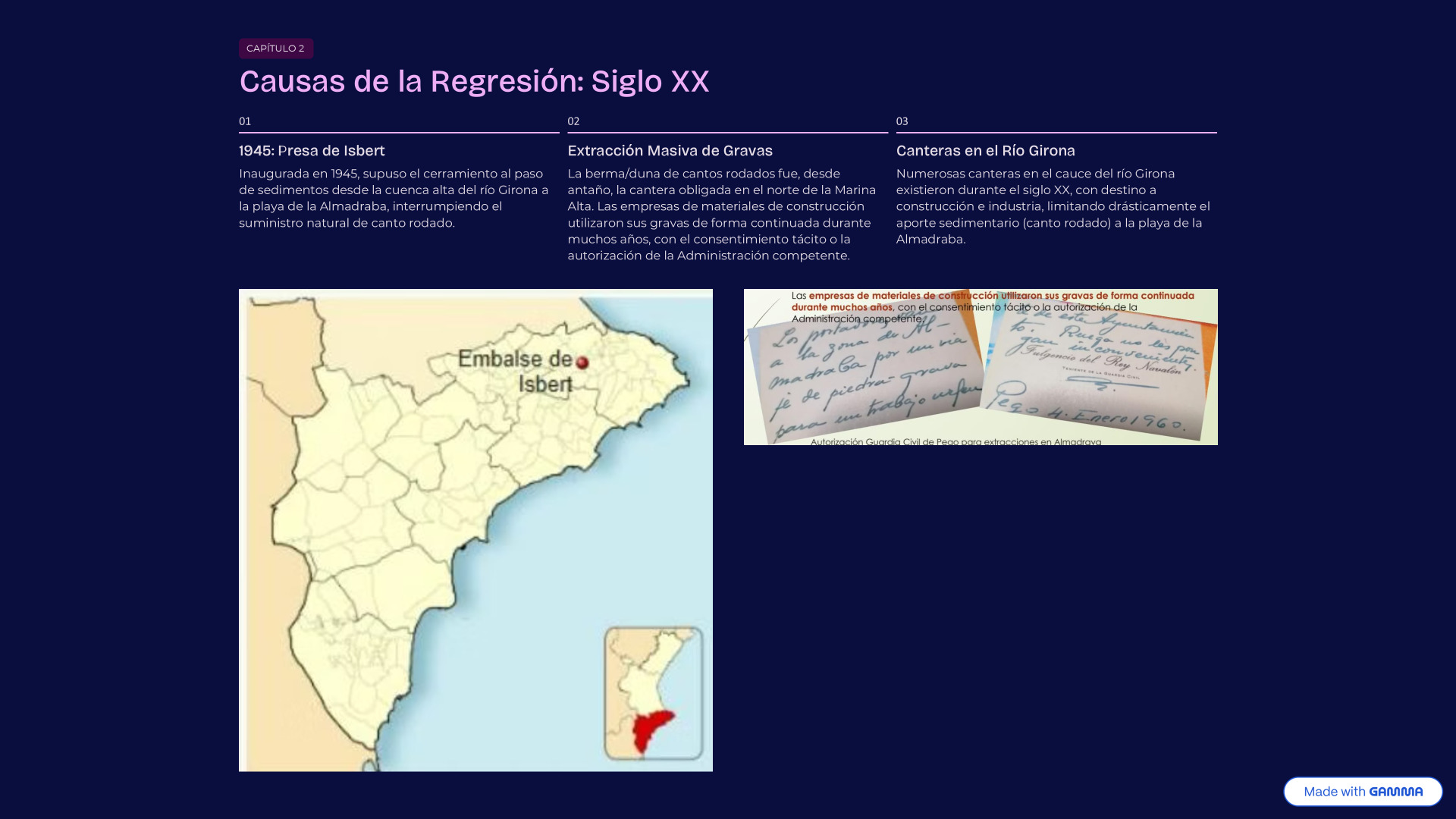 Nota:Las imágenes de las diapositivas forman parte de una presentación creada por el Sr. Pere Cardona, Vicepresidente de la Asociación de Vecinos de la Almadraba (AVA)