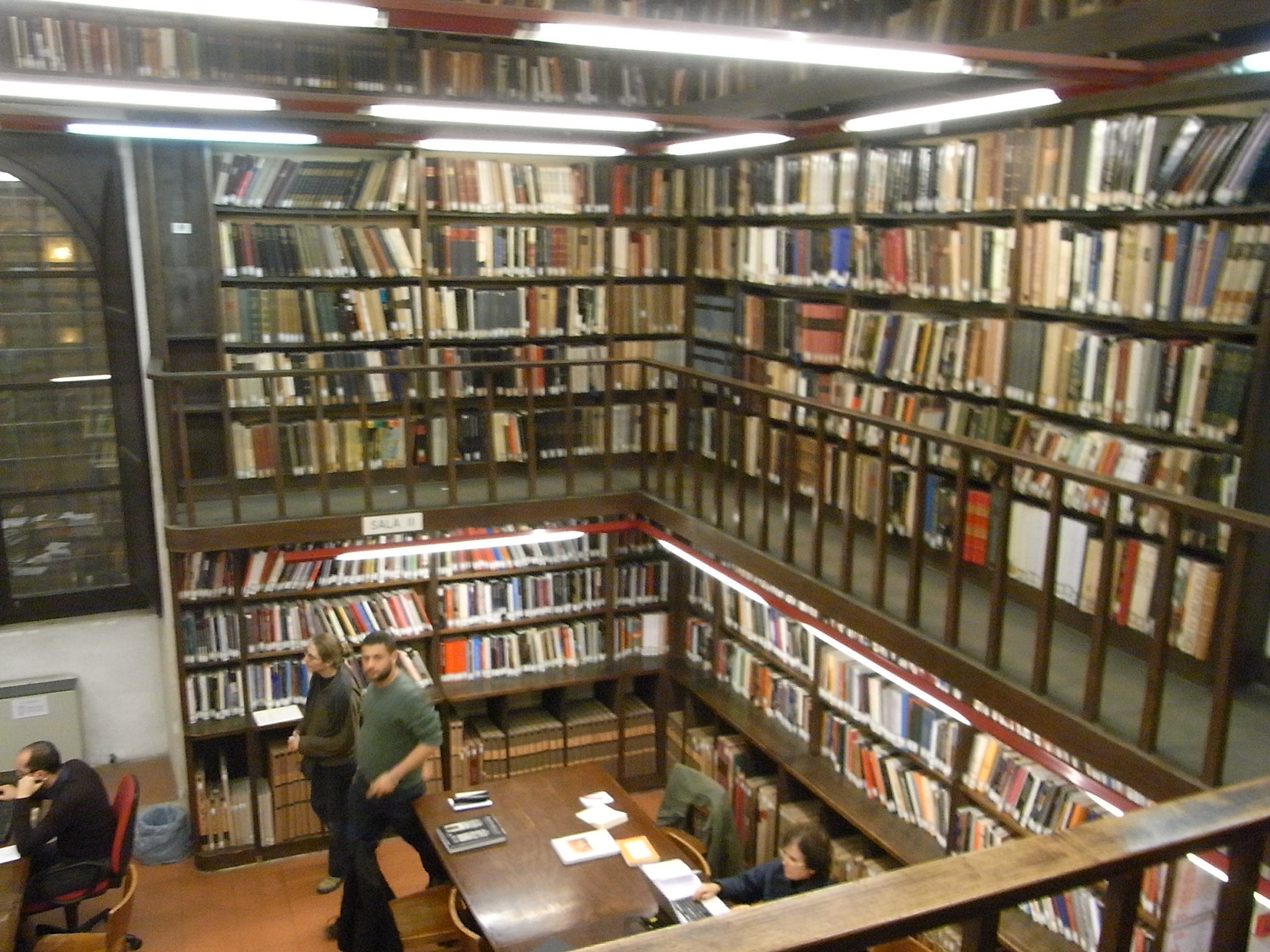 En el Palazzo Venezia hay un tesoro escondido, la Biblioteca (Nazionale) di Archeologia e Storia dell’Arte (BiAS) fundada en 1875 (Piazza Venezia, 3). Entré a buscar algunos datos bibliográficos y salí con mi flamante carnet de usuario. Lejos quedan los tiempos (al menos es de esperar) en que Mussolini tenía en ese edificio su cuartel general y se asomaba, echando pecho y alzando el mentón, al balcón que está sobre la puerta, por donde hoy se entra a la BiAS, para arengar a las multitudes. (http://www.archeologica.librari.beniculturali.it/)