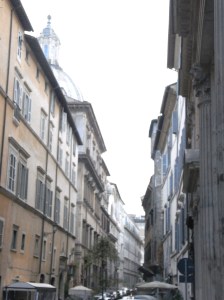 A la derecha la fachada de Santa Maria dell’Anima en la calle del mismo nombre