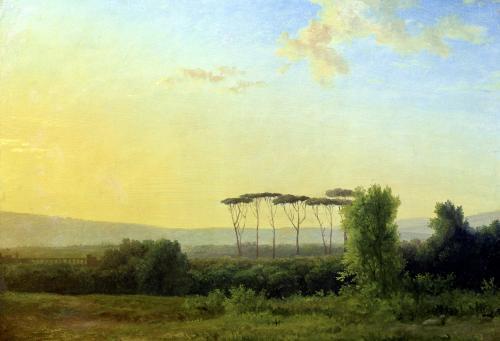 Nada es comparable a la belleza de líneas del horizonte romano, a esa dulce inclinación de planos, a los suaves y huidizos contornos de las montañas donde termina. A menudo los valles de esta campiña acaban en forma de anfiteatro, de circo, de hipódromo, las laderas talladas en terrazas, como si la mano potente de los Romanos hubiese removido todo el terreno. Un vapor particular que se extiende en la lejanía suaviza la forma de los objetos y lo que sus formas pudiesen tener de duro o abrupto. Las sombras nunca son ni pesadas ni negras; no hay masas de roca o de follaje en cuya obscuridad no se insinúe un poco de luz. Una tonalidad singular asocia tierra, cielo y aguas; por una gradación insensible de los colores todas las superficies se unen por sus extremos, sin que se pueda determinar el punto donde un matiz acaba y otro comienza. ¿No habéis sin duda admirado en los paisajes de Claude Lorrain esa luz que parece ideal y más bella que en la naturaleza? Pues bien ¡esa es la luz de Roma!