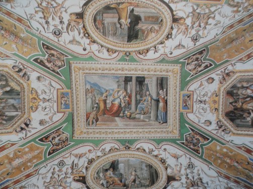 Si logramos escondernos en la galería y extender nuestro petate en el dormitorio de Cristina de Suecia no sé si podremos conciliar el sueño, pero en cualquier caso tendremos la ocasión de escudriñar con nuestra linterna las escenas de la vida de Moisés que ilustran sus techos, y que ella solo podía ver apartando las cortinas y sacando la cabeza de debajo del dosel.