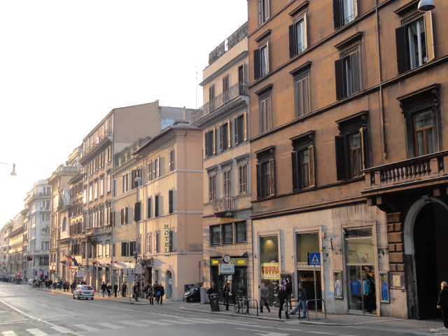 Si nos abstraemos del tráfico y miramos hacia las fachadas de la vía del Tritone bajo el sol del atardecer todos nuestros cansancios de paseantes se aliviarán.