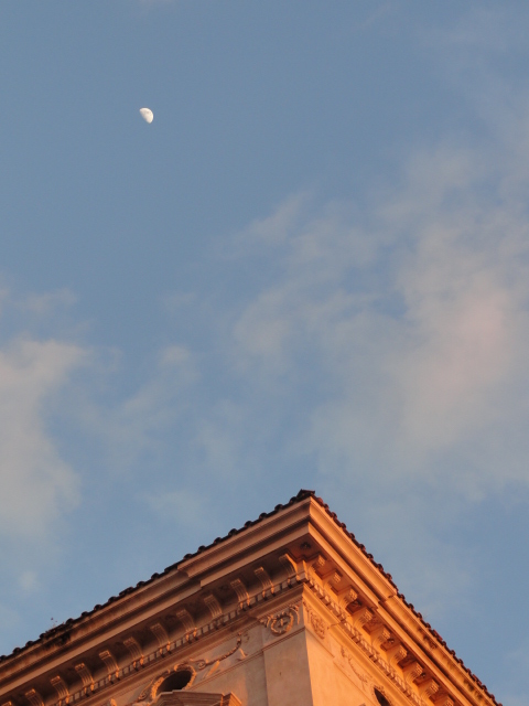Hoy pasaré por alto mi visita a la Galleria Barberini, aunque como anticipo, ved como crecía la luna esa tarde sobre los aleros del palacio que la alberga.