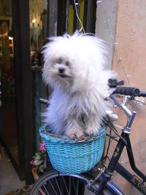 En las calles de Roma he encontrado algún perro ecologista, como este que, en vez de viajar a lomos de un diesel 4×4, viaja en bicicleta.