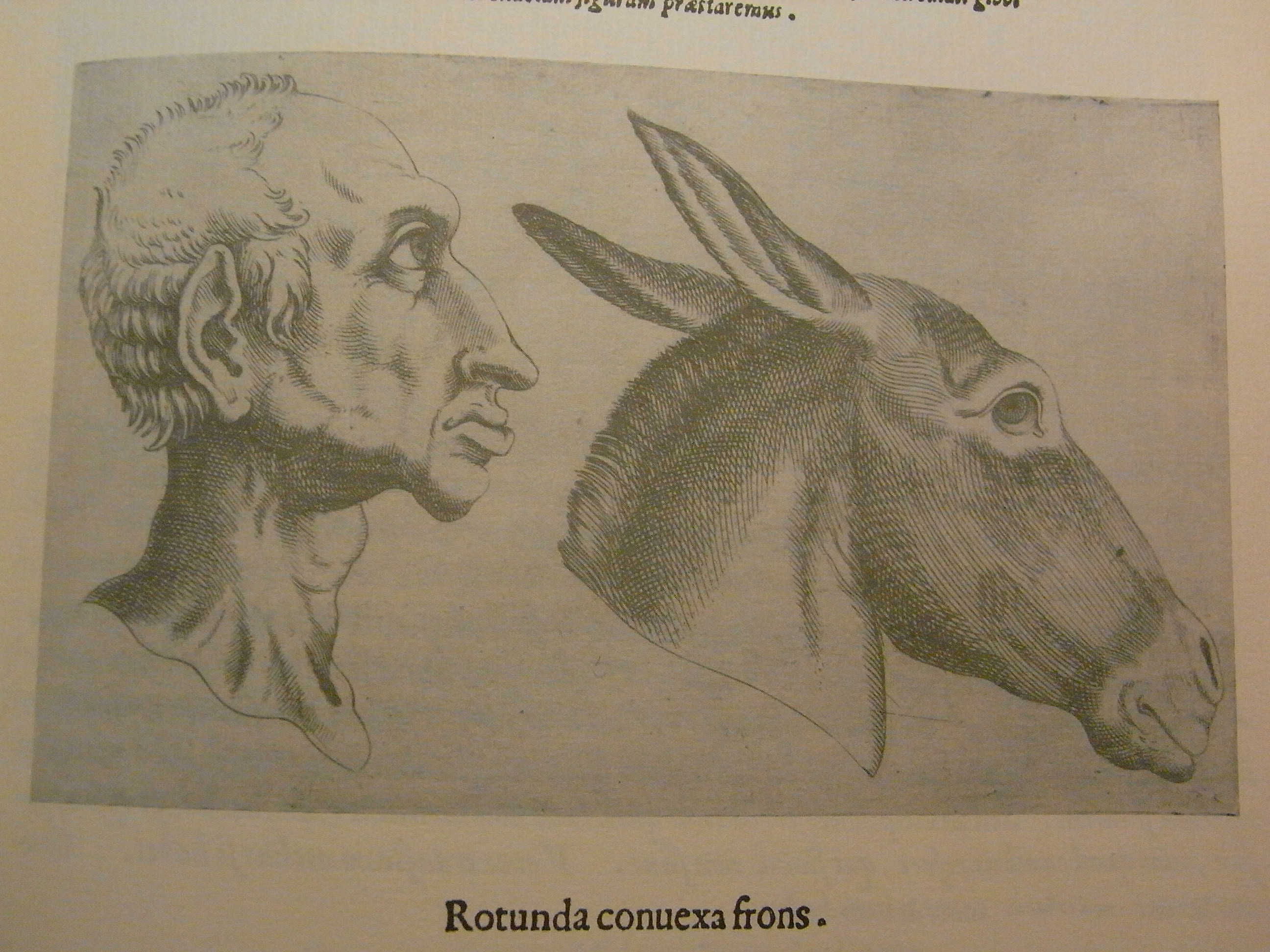 Que el rostro sea “el espejo del alma” es discutible –yo pienso que es el espejo del cuerpo- aunque ese dicho refleja una convicción popular y una tradición que viene desde antiguo. De hecho son legión los filósofos, tratadistas y literatos que han atribuido significados a los rasgos, no sólo del rostro, sino también de las distintas partes del cuerpo y hasta a la forma de moverse. A través de tales o cuales características físicas se revelaría el carácter y la previsible conducta . En el siglo XVI, Giovanni Battista della Porta, en sus cuatro libros De humana Physiognomonia (1586), recopila interpretaciones fisionómicas de autores ilustres y las organiza siguiendo las partes del cuerpo. Cita a Aristóteles (que en realidad resulta ser el pseudo Aristóteles), Plinio, Filemón, Plutarco, Polemón, Galeno, Avicenna, Scoto y muchos otros. Pero la originalidad del libro estriba no en el esfuerzo sistemático (el primer siglo de la imprenta alumbrará muchas recopilaciones de ideas y opiniones de la Antigüedad clásicasobre las más diversas materias) sino en el trabajo de analogía y comparación gráfica de los rasgos humanos con los animales, ilustrados con sus caricaturas. Sul libro ha sido parte de la materia de III de Anatomía Artística, en el proyecto de anatomía animal. Si tienes rasgos de búho, es previsible que tu modo de ser tendrá unas determinadas características…y así sucesivamente.