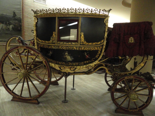 La carroza que, allá por los años veinte del siglo XIX, se hizo construir León XII para visitar las iglesias de Roma y causar impresión a sus feligreses, la più rica carrozza sovrana o “berlina de gran gala”,costó veintiséis mil escudos, está aparatosamente decorada en bronce dorado y el tiro constaba de seis caballos.