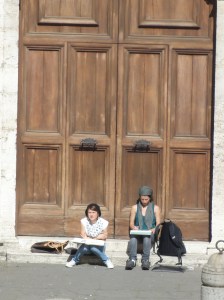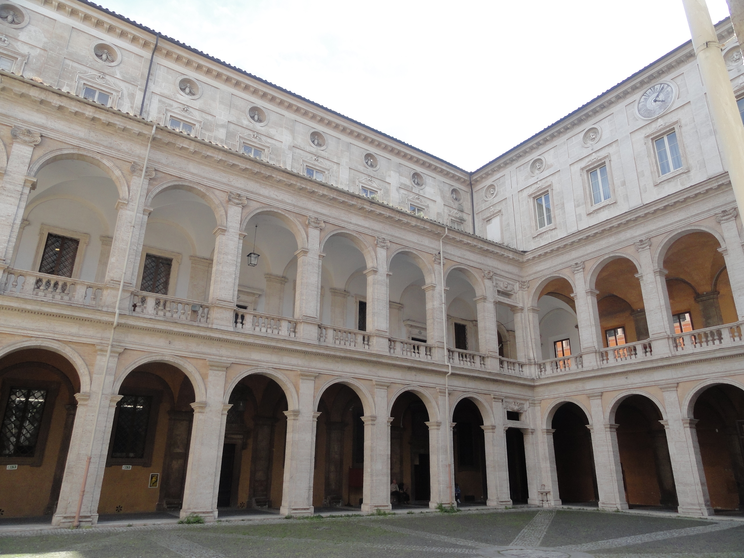 Dos estudiantes de arquitectura dibujaban tranquilamente las arcadas del hermoso patio de esta iglesia, que acogía la Biblioteca Alessandrina en tiempos de los papas y que hoy alberga el Archivo del Estado italiano.