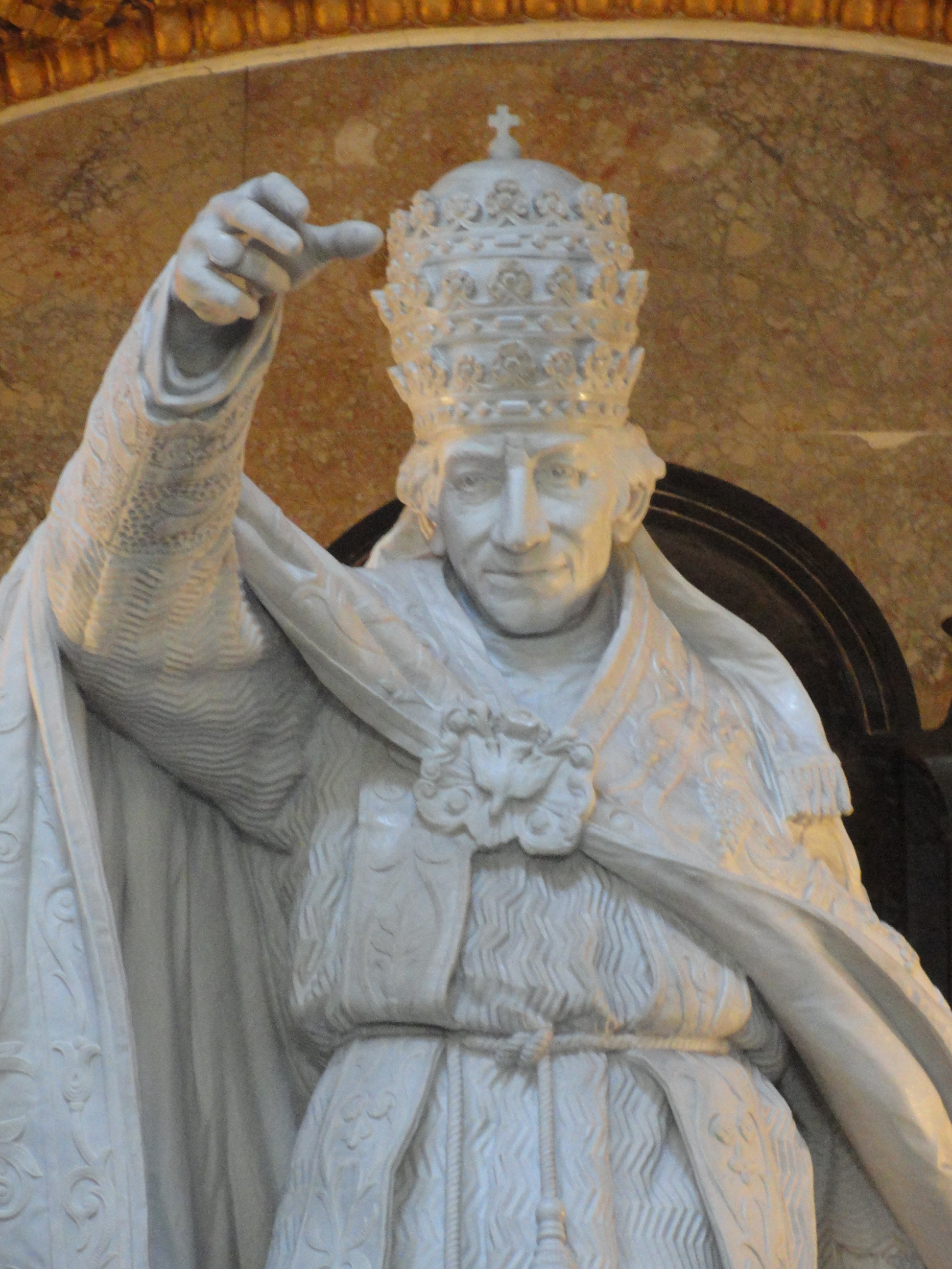 El turista que visita Roma no se irá de la ciudad eterna sin que se le hinchen los pies y sin encontrarse con al menos dos docenas de pontífices del Renacimiento y siglos sucesivos esculpidos en mármoles de gran tamaño en todo el esplendor de sus vestiduras y sus mitras, en basílicas, iglesias, museos y palacios. Ese número aumenta a varios centenares si tenemos en cuenta la pintura en frescos y lienzos: Julio II, Clemente XII, Urbano VIII, Inocencio X, Benedicto XIV, León XIII, Pío XI, etc., etc.