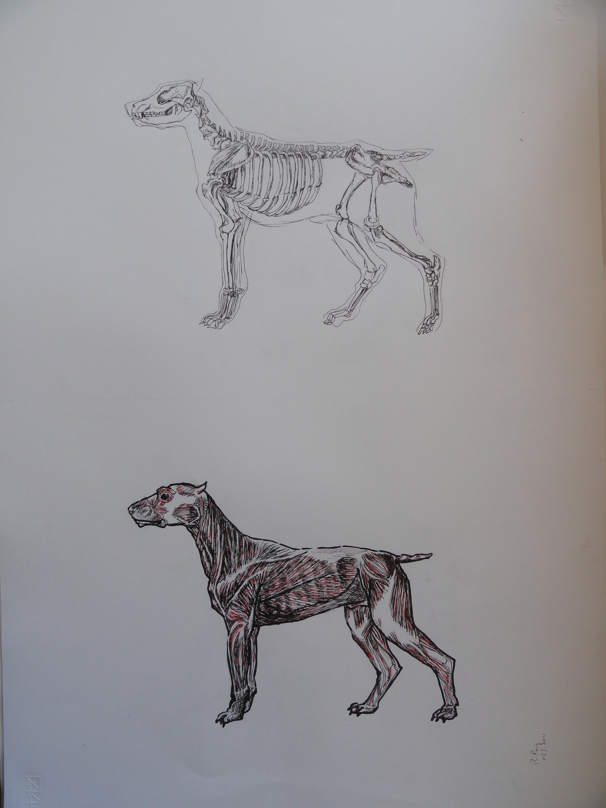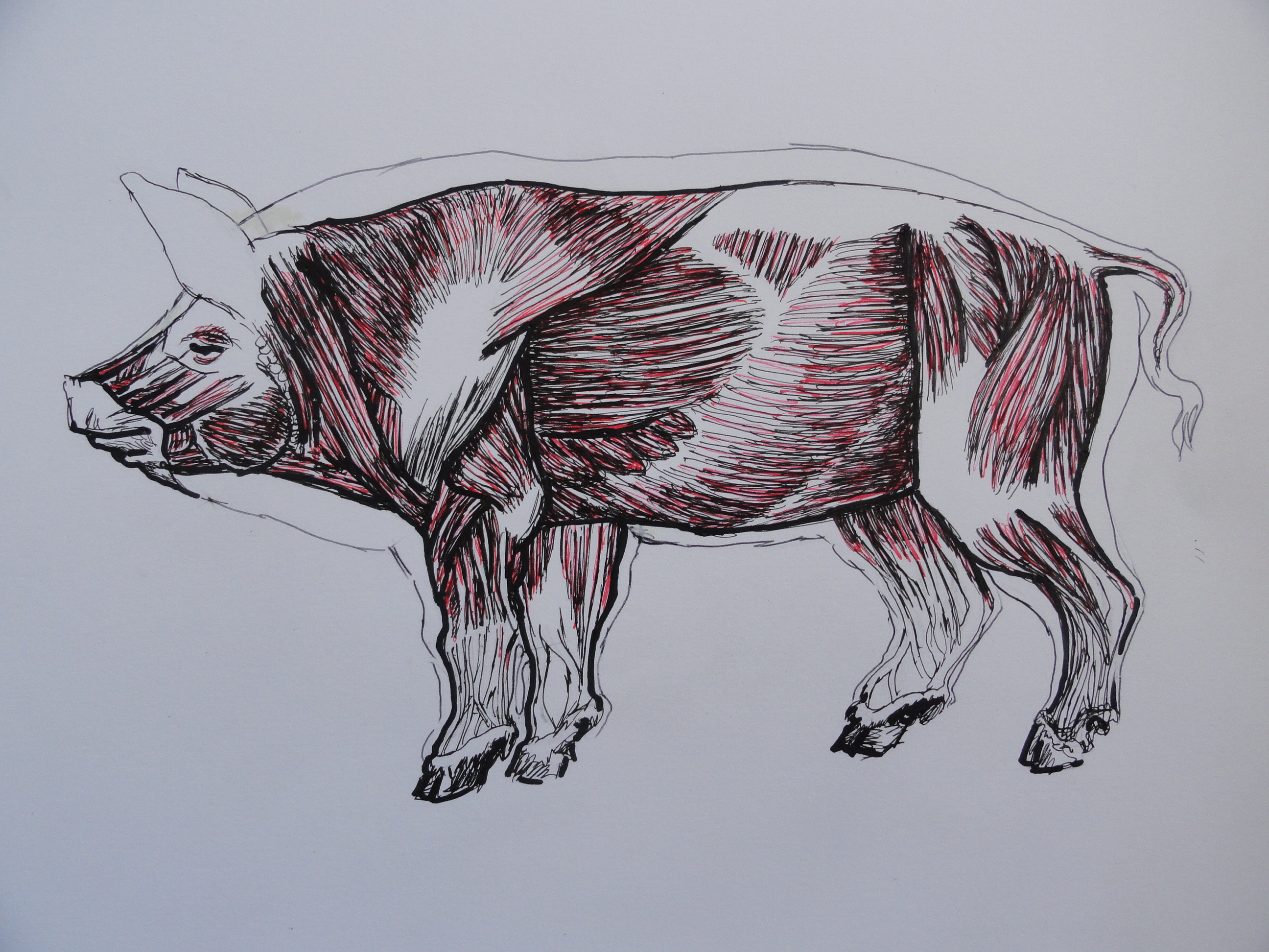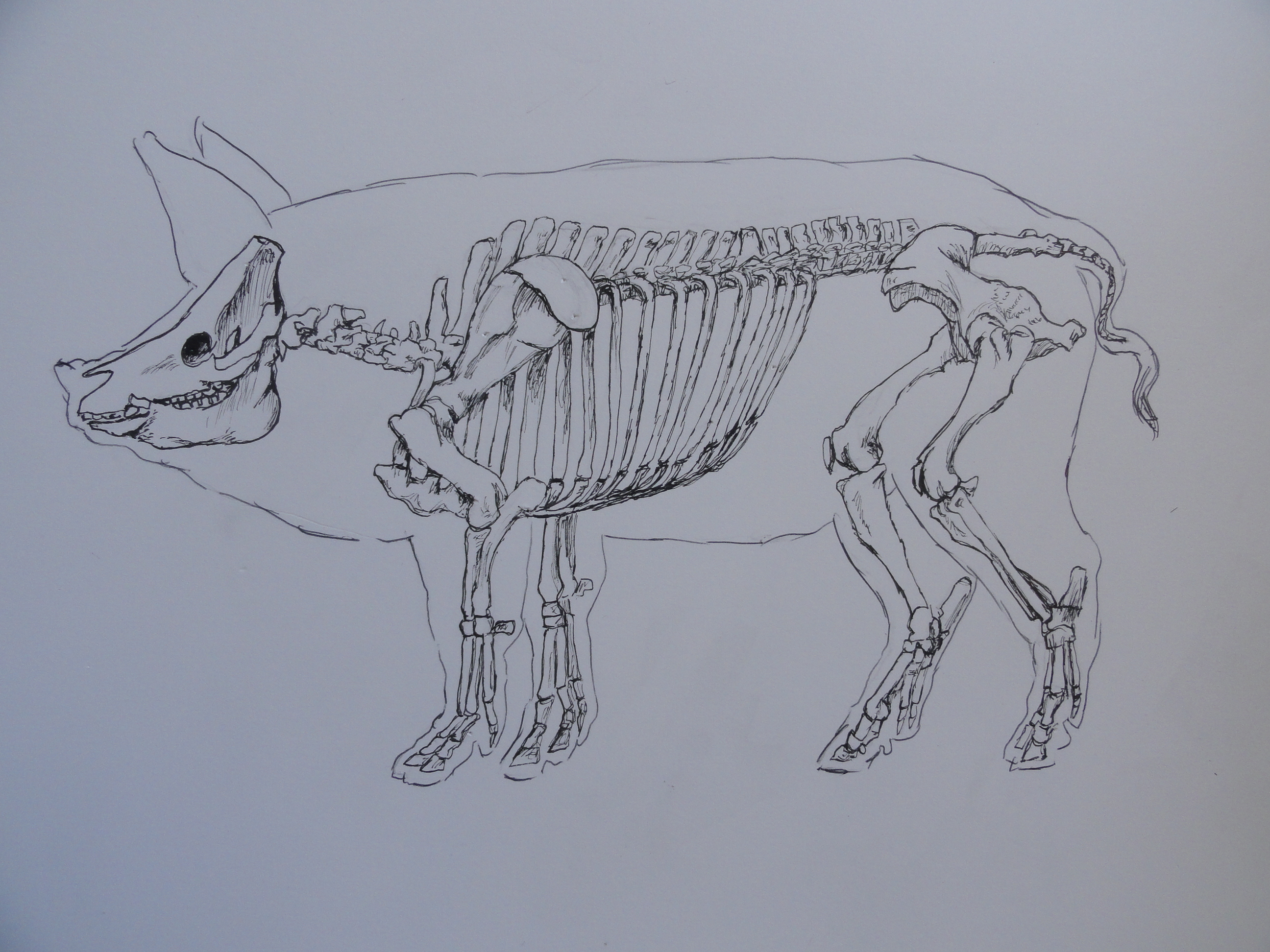 En otros ejercicios académicos de anatomía animal se trataba de dibujar el esqueleto y el sistema muscular de al menos cuatro animales. Por ejemplo el sistema óseo de un cerdo…