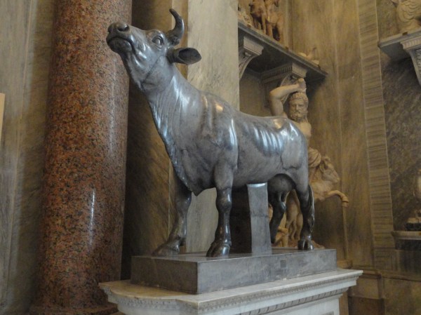 La ternera en mármol gris-morado, de época romana, copia parece de la famosa vaca en bronce de Mirón, que se exhibe en el Pío Clementino me sirvió de modelo. Este es uno de los resultados.