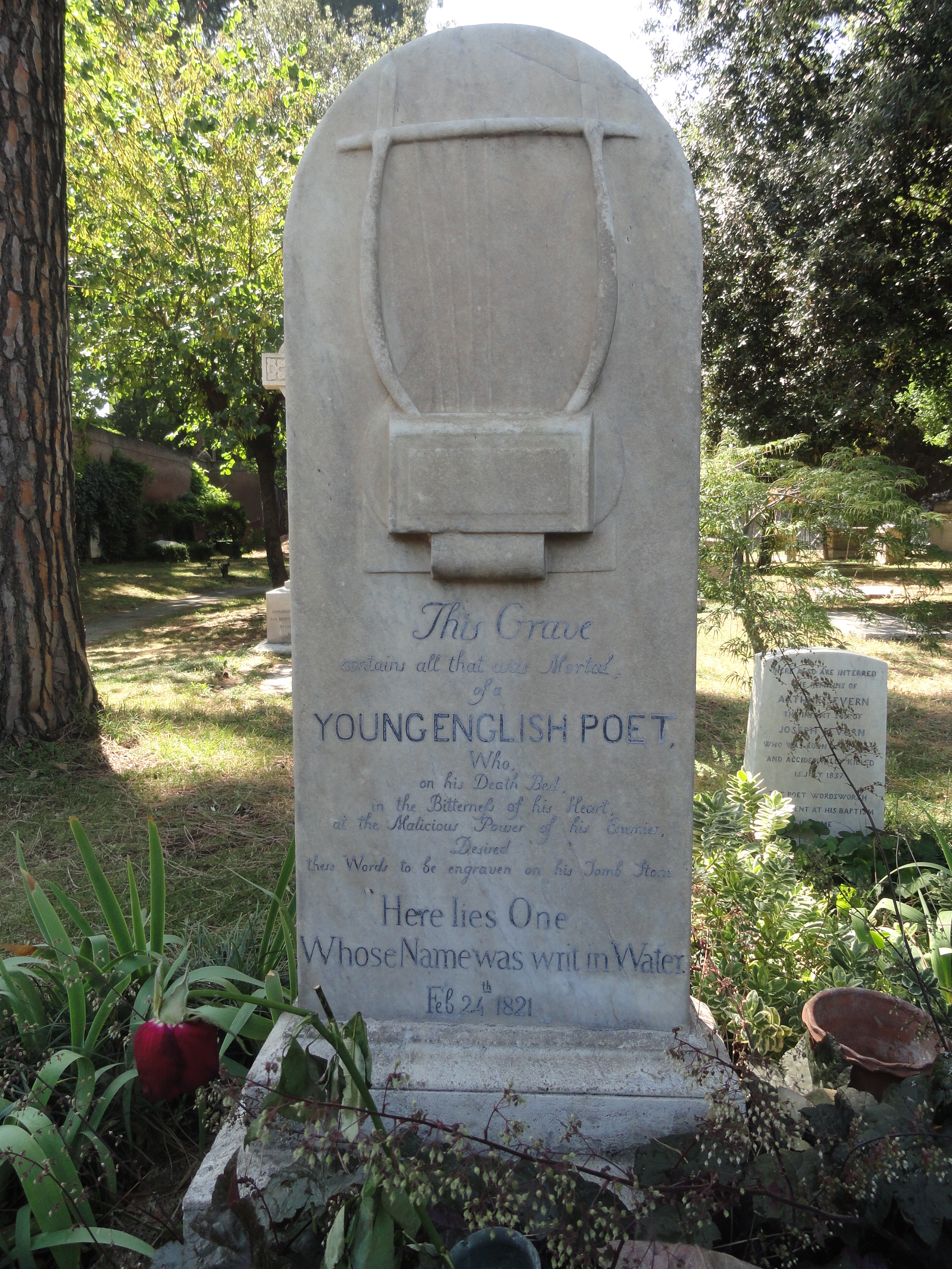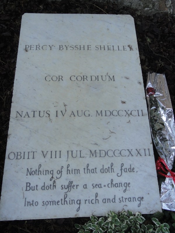 No sólo la urna griega de Keats, sino los sepulcros todos de este cementerio protegido esconden peripecias vitales y leyendas.Para muestra, la de Shelley, o de sus cenizas más bien, pues fueron enterradas aquí por sus deudos, años después de su trágica muerte en el mar toscano y de su incineración, decidida por Byron, sobre la arena de la misma playa de Viareggio donde el mar arrojo su cadáver. Llevaba aún los poemas de Keats y un volumen de Esquilo en el bolsillo.