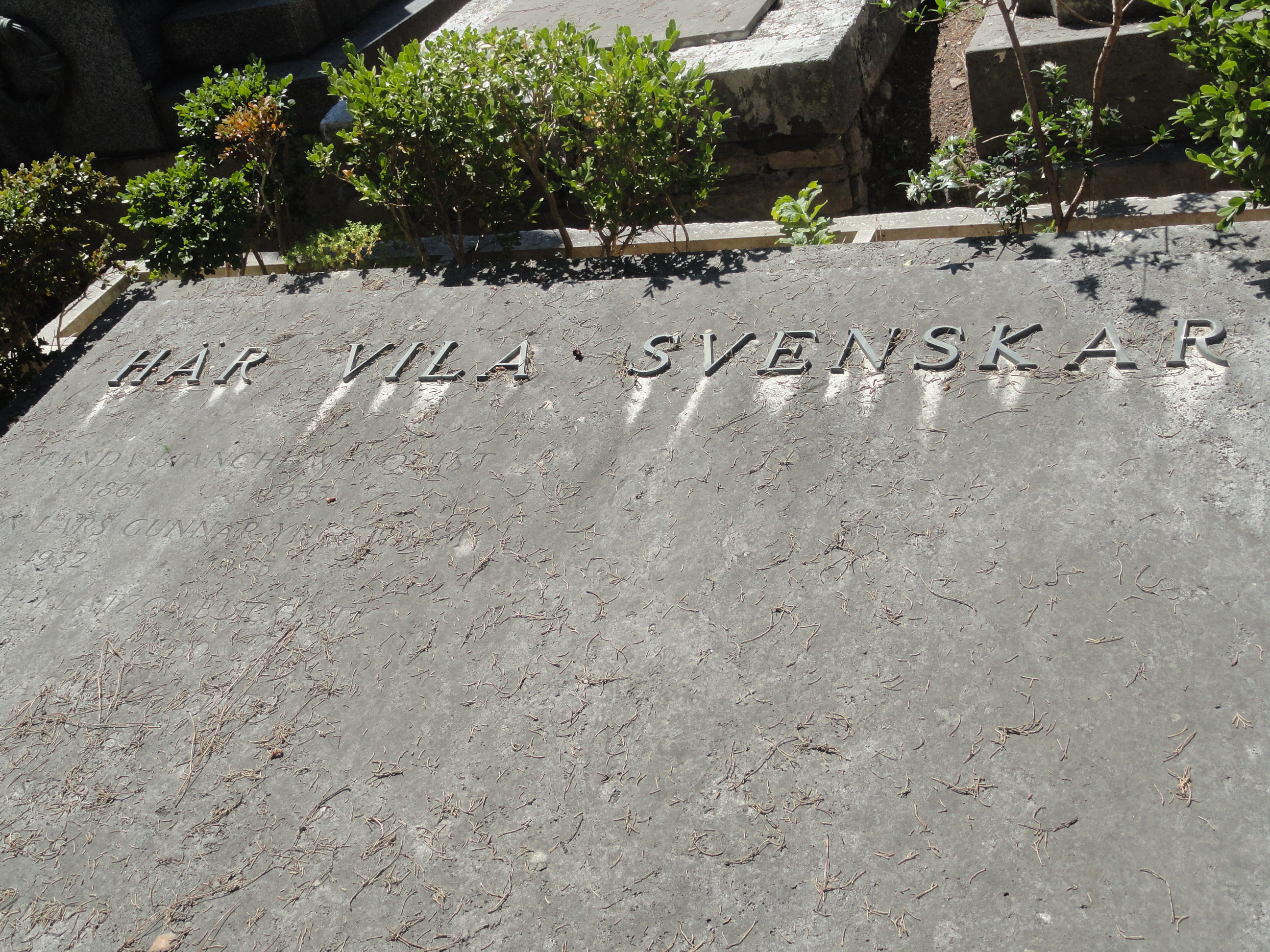 …y ante la lápida colectiva de los suecos aquí enterrados (que reza literalmente: «aquí reposan suecos»).
