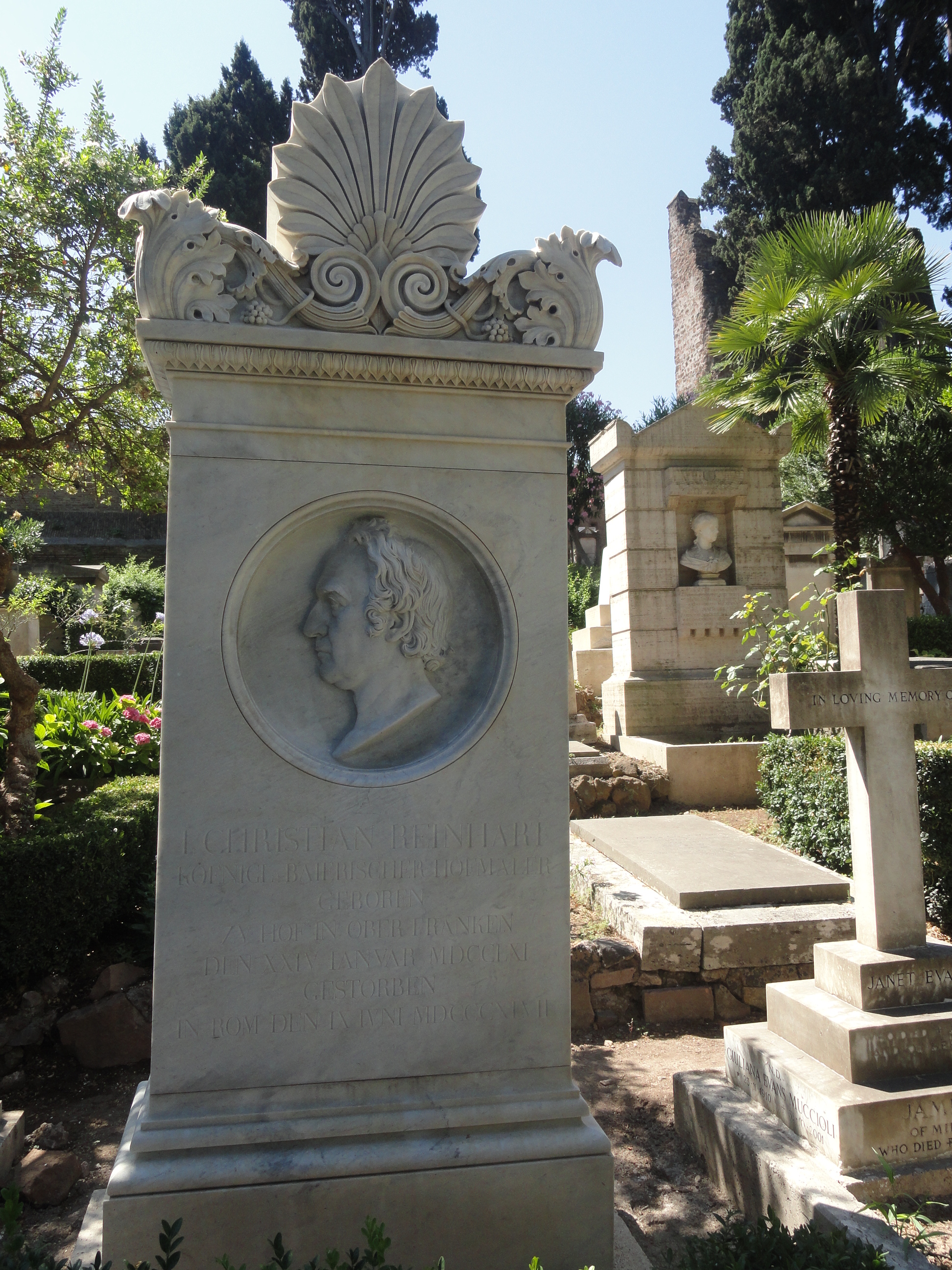 Antes de salir de los senderos umbríos de este cementerio romántico, no puedo menos de detenerme ante la tumba de Johann Christian Reinhart, el artista alemán a quien dediqué mi entrada del 6 de mayo pasado…