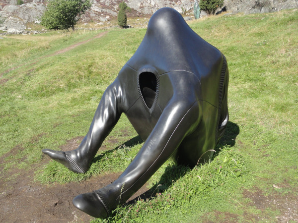 Un resignado personaje se sienta sobre la yerba, ha renunciado a quitarse el jersey que le tiene inmovilizado para siempre en su postura de bronce. La escultura se titula “Big Culp” y es obra del austriaco Erwin Wurm.