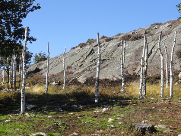 Unos troncos de abedules muertos destacan por su blancura en una paisaje en el que faltan. Es el sueco Nils Ramhøj quien con su instalación “Rekonstruktion” evoca así la ausencia del que puede considerarse el árbol nacional sueco.