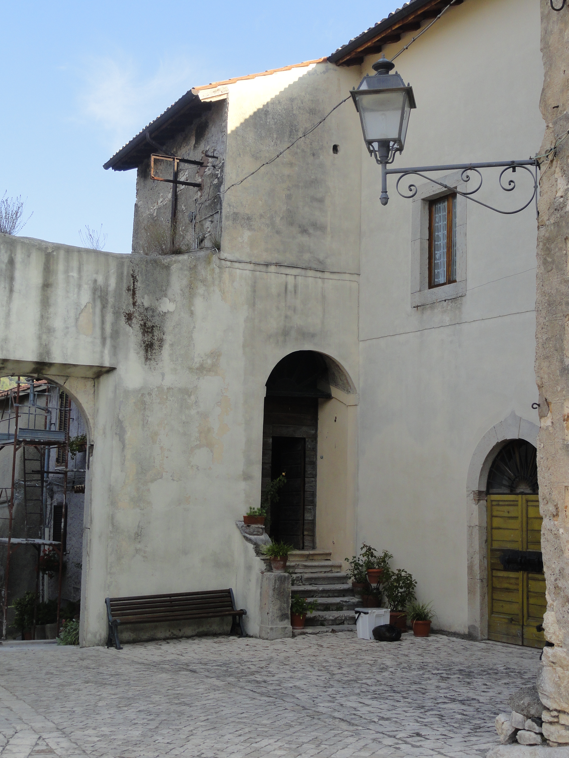El Comune de Licenza nos obsequió con el alojamiento en la “foresteria”, un ala del Palazzo de los Orsini restaurada, en la parte más alta del pueblo, al final de empinadísimas subidas, en la plaza del castillo. La foto muestra la entrada de nuestro alojamiento.