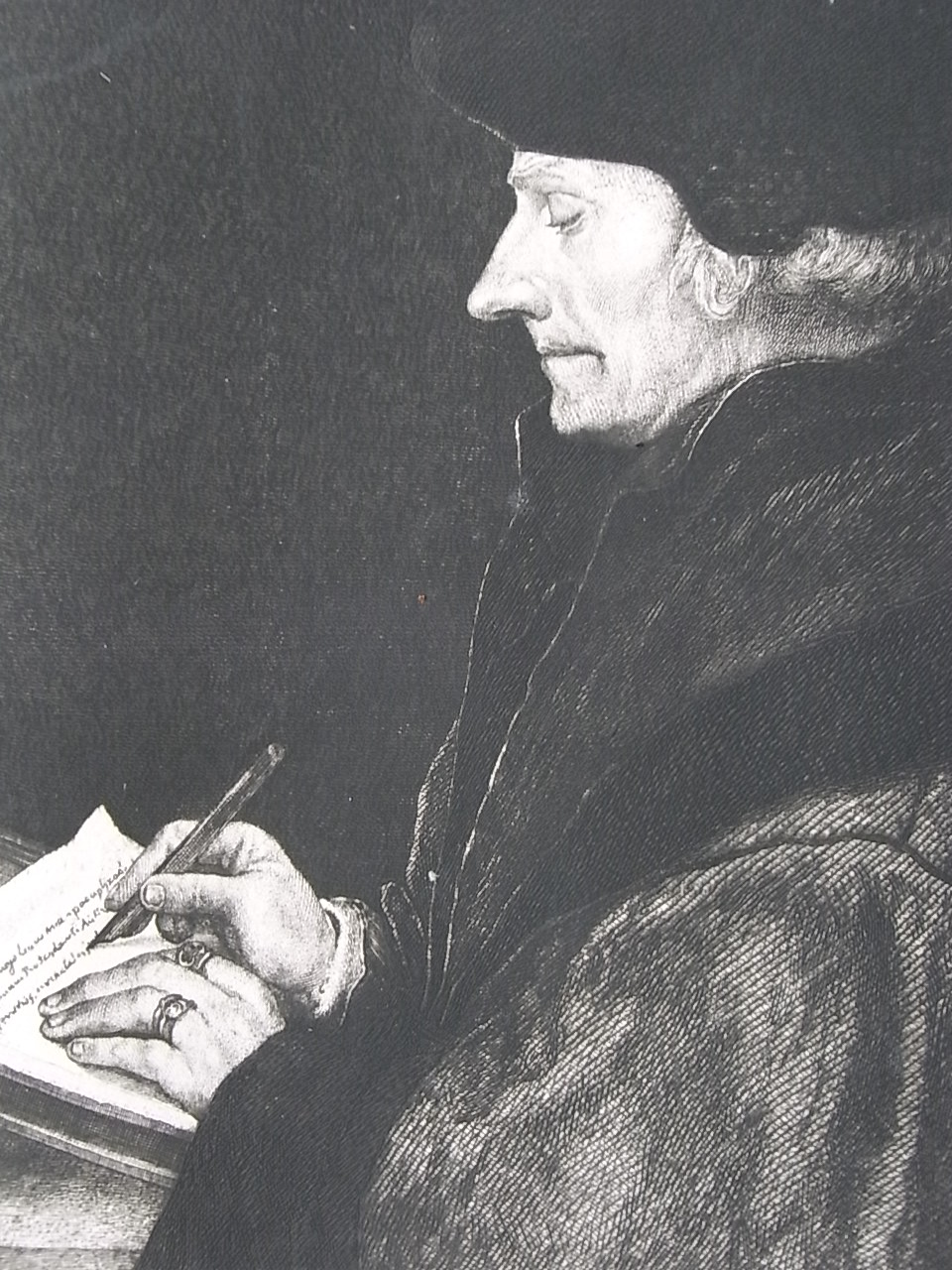 Así que concluimos con una versión del retrato de Erasmo de Hans Holbein (Louvre) en un grabado presentado en el Salón de 1878 por Félix Bracquemond (1833-1914) y Henri Lefort des Ylouses (1846 -1912), este último famoso también por su técnica gipsográfica ( ver: http://musette.free.fr/brolls/brols63.htm )