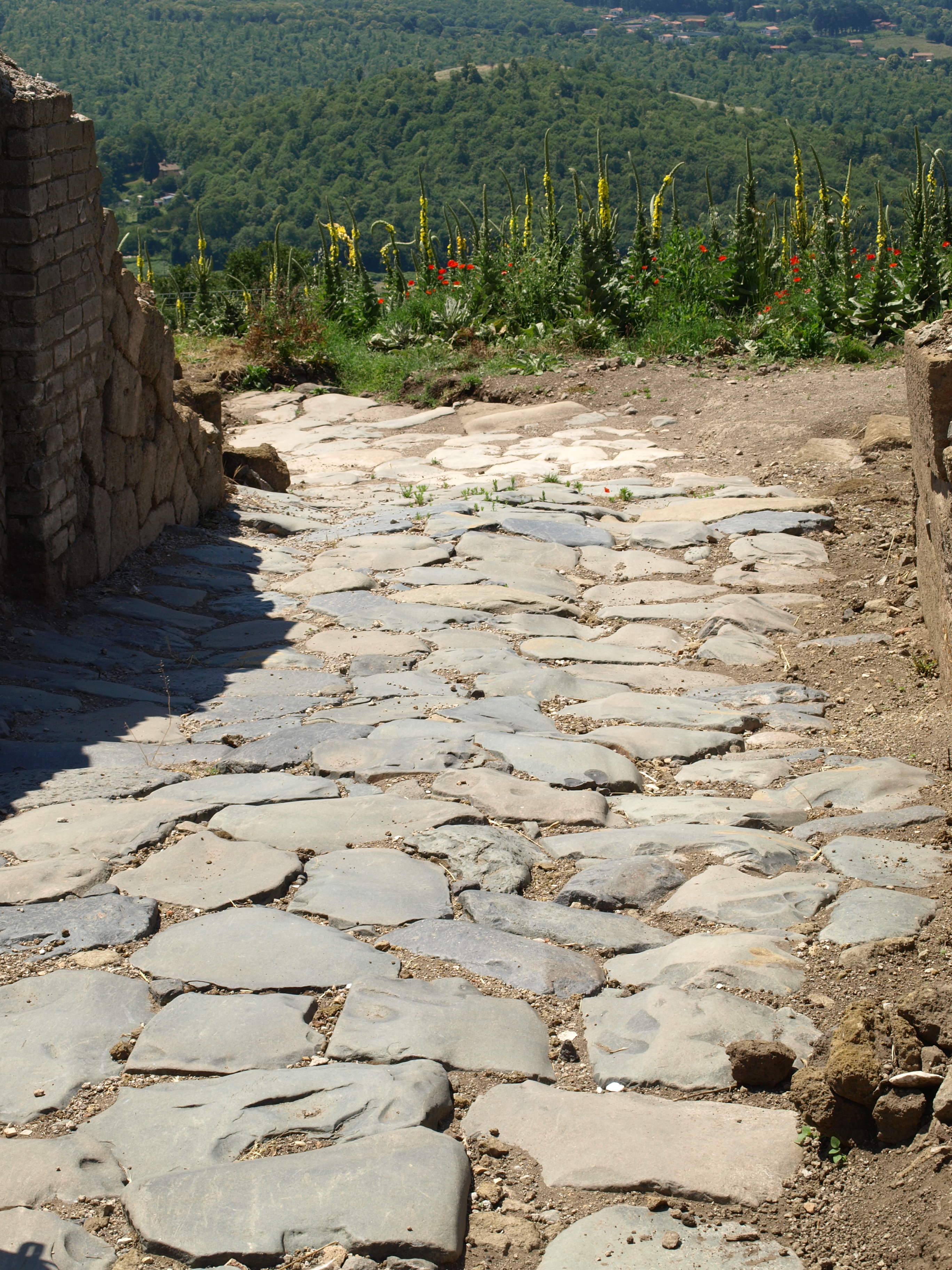 Nos comentan que si se renovase la financiación de la etapa siguiente se podrían excavar sus ruinas. Mientras tanto, desde el sendero, disfrutamos de la vista del Monte Cavo, al otro lado del valle que recorría la Via Triumphalis, de la cual aún se conservan restos