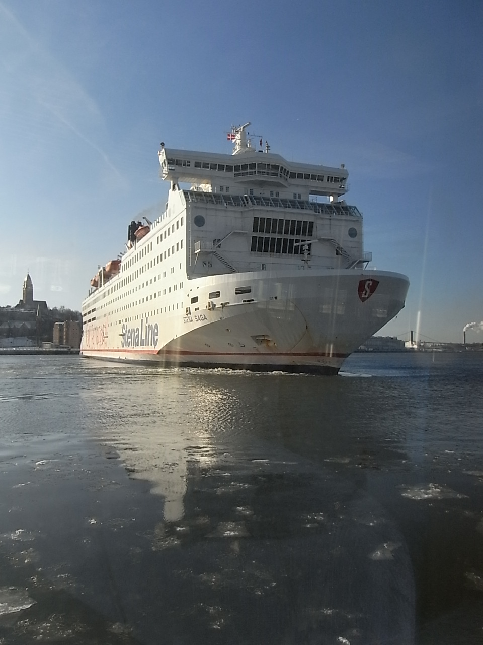 El caso es que el 30 de enero mi “vaporetto” gotemburgués le pasó bajo las narices, es decir bajo la quilla, a un paquebote de Stena Line que en ese momento embocaba el puerto de Gotemburgo.