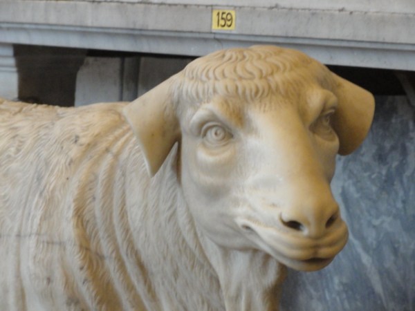 En respuesta a mi consulta por correo electrónico en febrero del 2011, el conservador de la Sala de los Animales corroboraba su ficha del catálogo y añadía que en torno a 1795 parece que Franzoni, escultor y restaurador romano, le puso una nueva cabeza al cuerpo del borrego que, procedente de la Villa Medici de Roma, había sido adquirido por el museo.