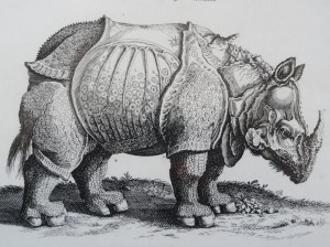 Rinocerontes de Aldrovandi y Jonstonus, copias del rinoceronte que Durero dibujó y grabó más de un siglo antes