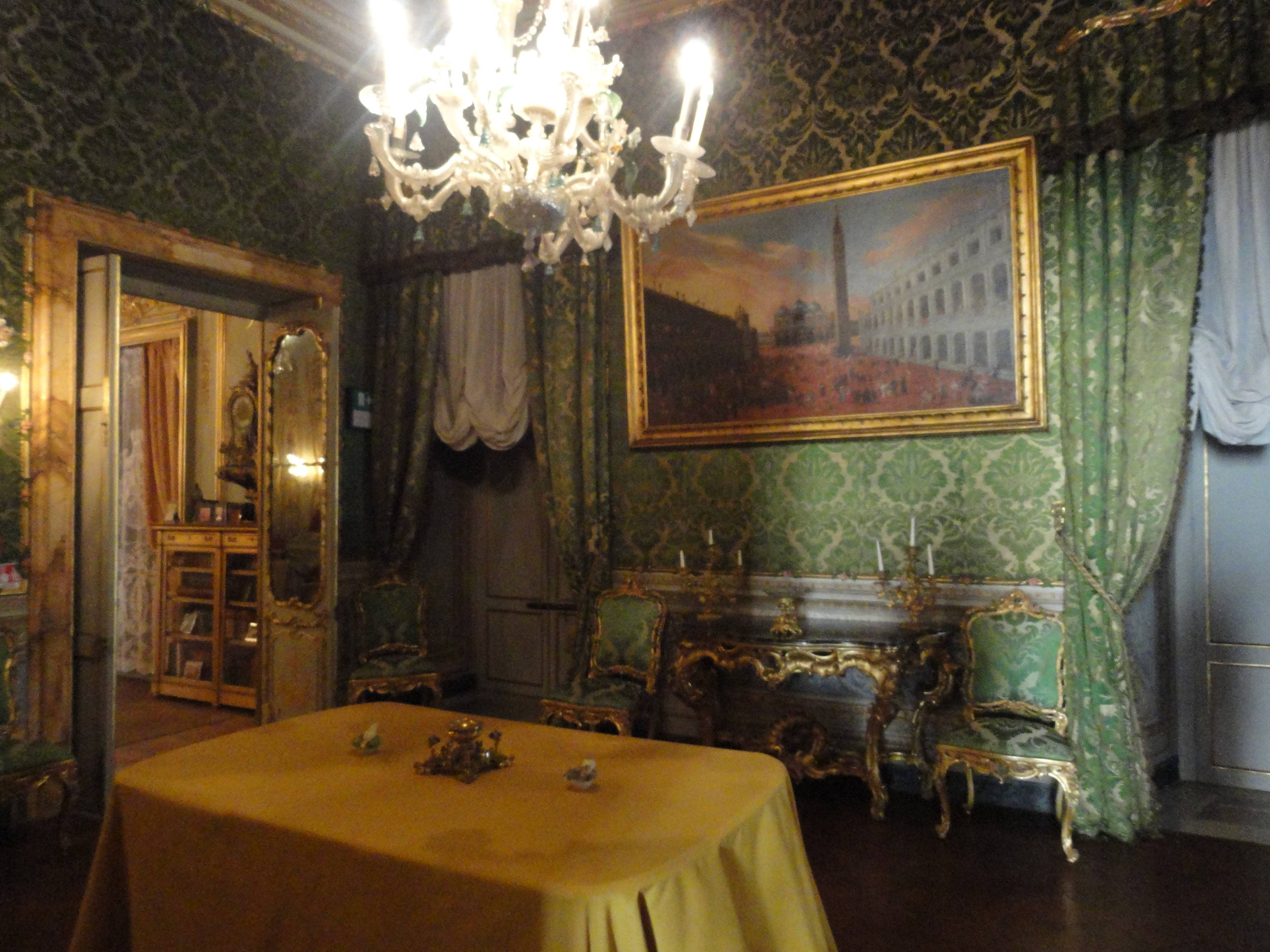 Pasando luego por la “sala de los terciopelos”, la “sala da ballo” y la capilla y su antecapilla, se circula entre “bagatelas” de pintores de género como David Teniers y paisajes de flamencos e italianos, para llegar a «La Galleria», con sus cuatro brazos.