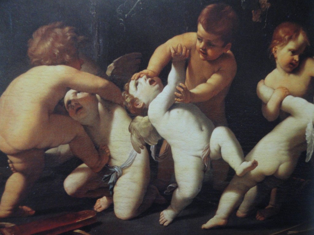 En cualquier caso, por favor, no perdamos las maneras, como estos «putti» que se pelean, parece que por razones étnicas y no sabemos si también dogmáticas, en este cuadro de Andrea Podestà que también está en la Galería Doria Pamphili. Al parecer los morenos llevan las de ganar…