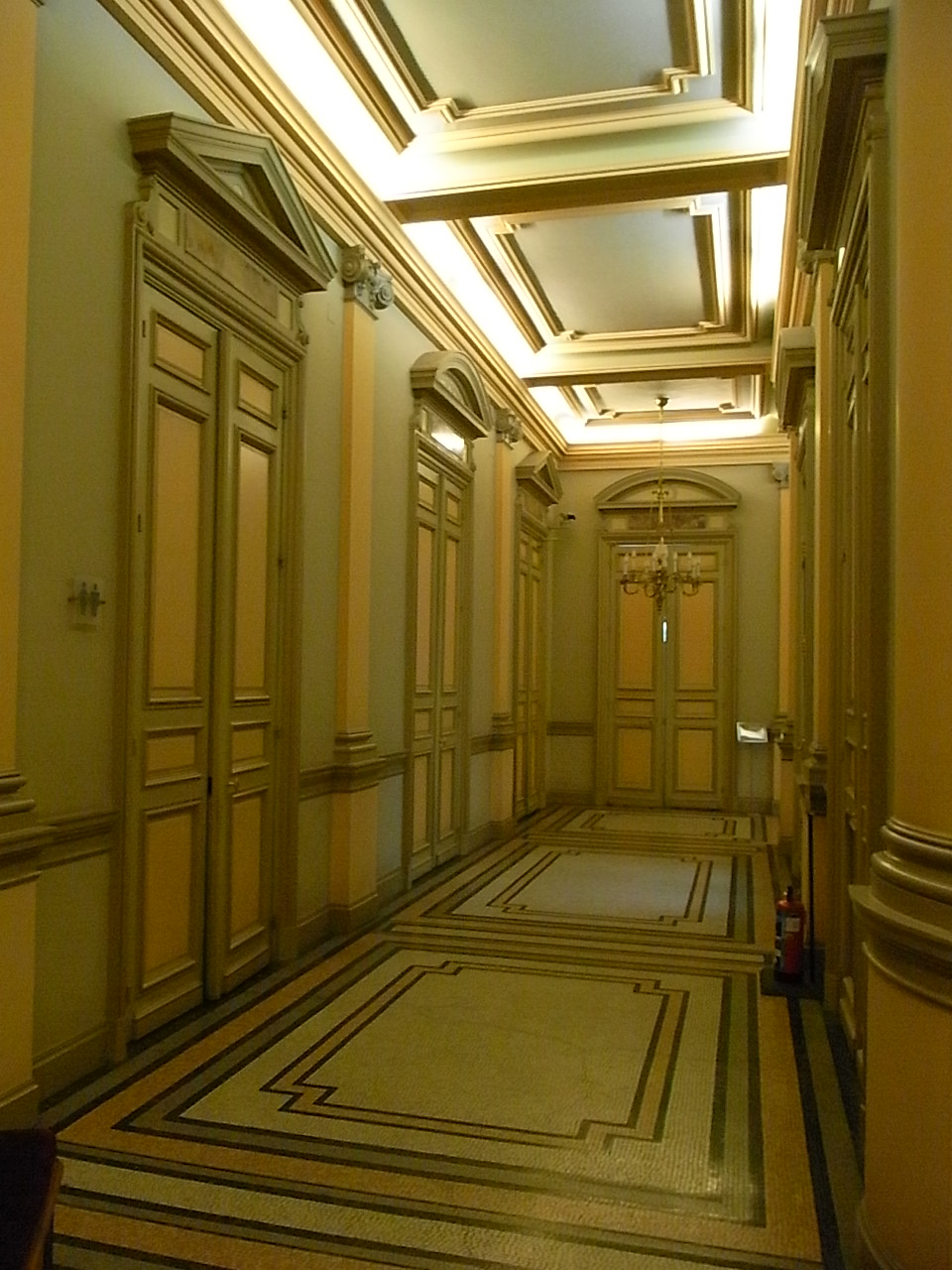 Las salas y salones de este edificio fascinante, romántico y selváticamente barroco, llevan los nombres de escritores y próceres de Hispanoamérica. Borges, Asturias, Bolivar, Rubén Dario, etc. Aunque, salvo que no me haya dado cuenta, he echado de menos el nombre de Alejo Carpentier. Yo creo que este palacio hubiese hecho las delicias del autor de El reino de este mundo, Los pasos perdidos, el Siglo de las luces y Concierto barroco.