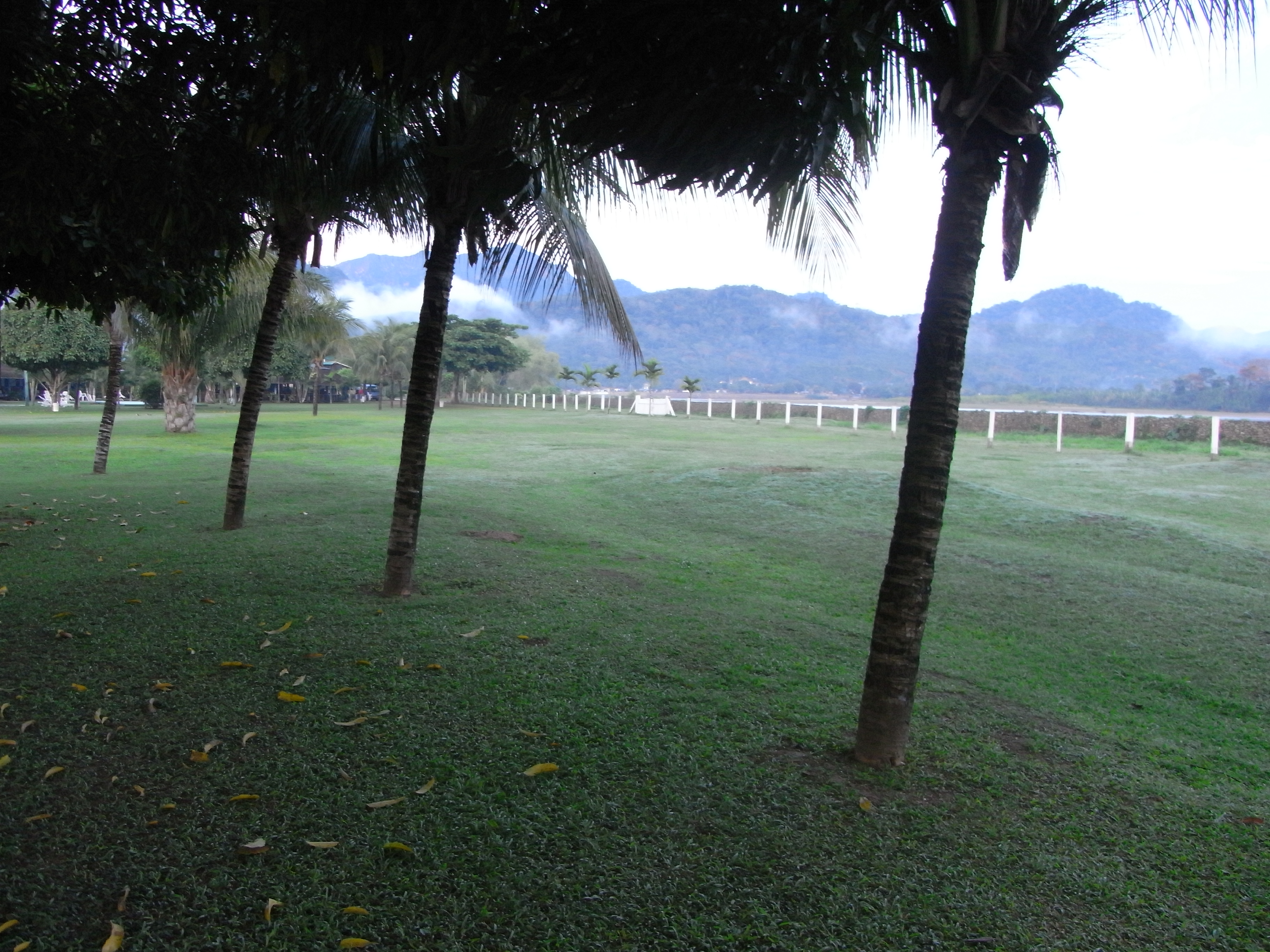 Una hilera de palmas me recibe.