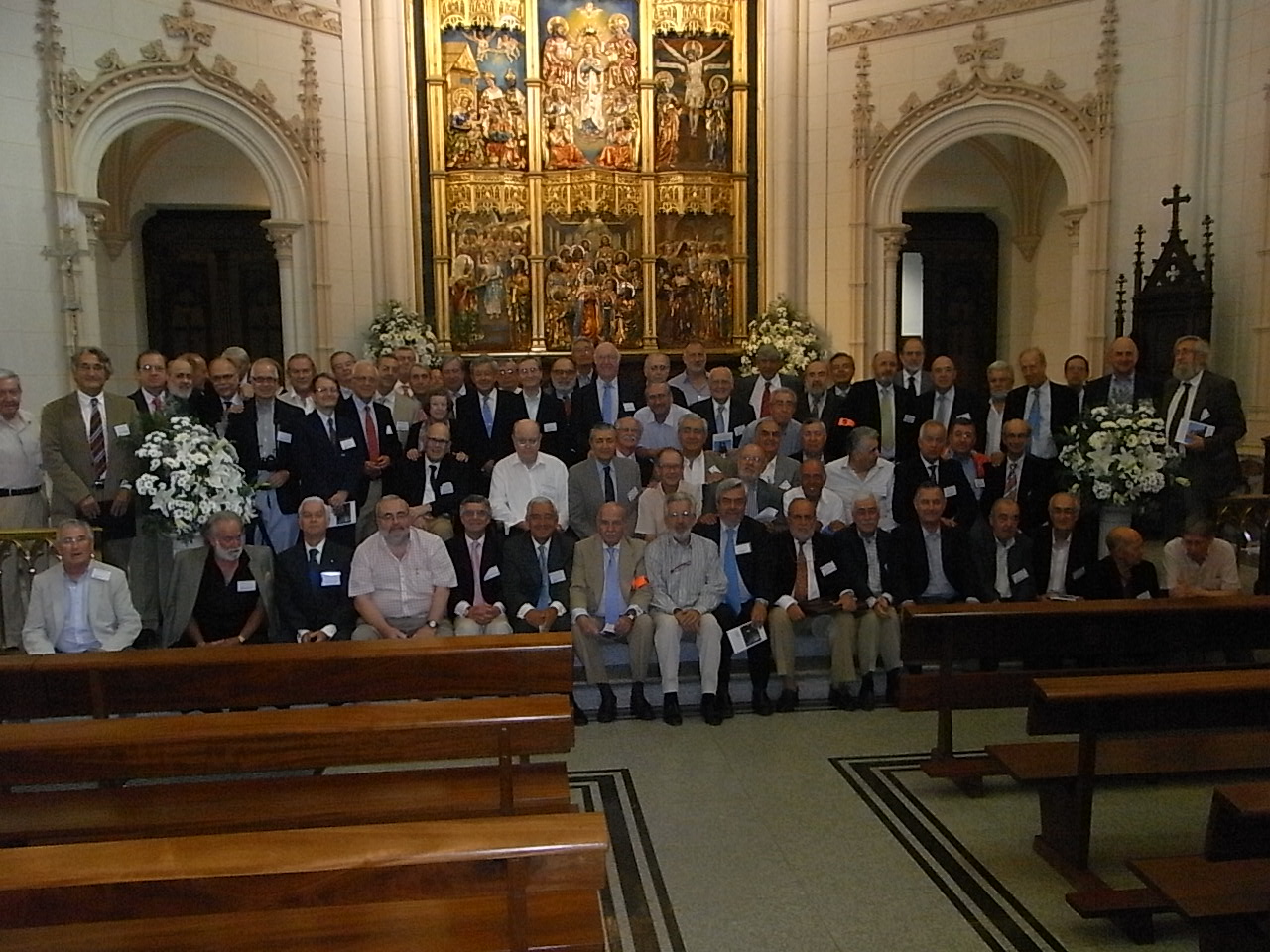 Tomadlo como queráis, como cuestión estética o como dato existencial, el caso es que los jóvenes de la foto que encabezaba esta entrada, seres abiertos al futuro en aquel lejano 1962, hemos comprobado a lo largo de cincuenta años que la vida es una ‘opera aperta’. Como prueba, tratad de identificarnos en esta foto del mes de junio del presente año, ahora dentro del grupo de cerca del sesenta por ciento de nuestra promoción que se reunió para conmemorar el medio siglo desde nuestra salida del colegio.