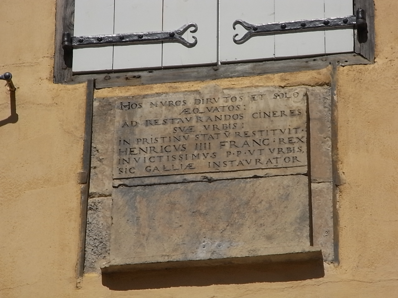 Por la mañana visito la villa medieval, destruida durante las guerras de religión, que fue reconstruida por Enrique IV. No encontré ninguna placa en memoria de su población protestante, masacrada por tropas católicas durante aquellas hazañas en nombre de la religión, pero sí una que agradece al rey su obra.