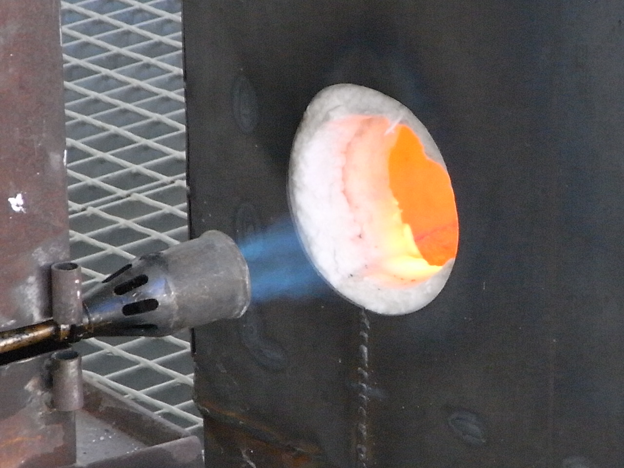 Pero, aun hay que descerar al soplete, para que la cera se pierda y quede sólo el molde o “cascarilla” apto para resistir el bronce derretido.