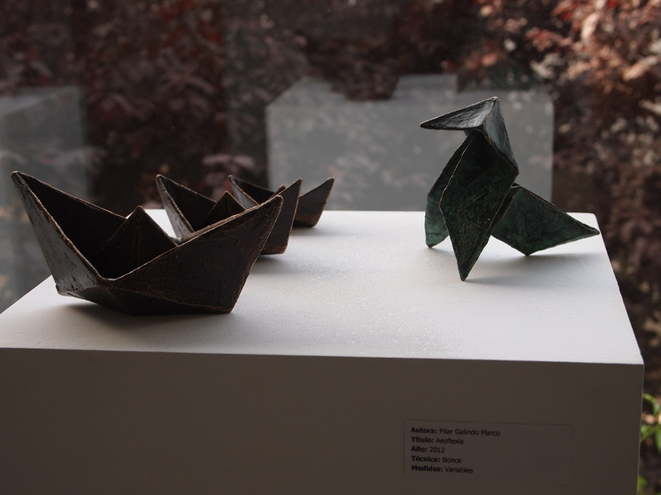 A fines del mismo mes, una exposición ante los ventanales de la recepción de la Facultad nos ofrece las primeras esculturas del trabajo en curso. Las fotos de la exposición las tomó Gema