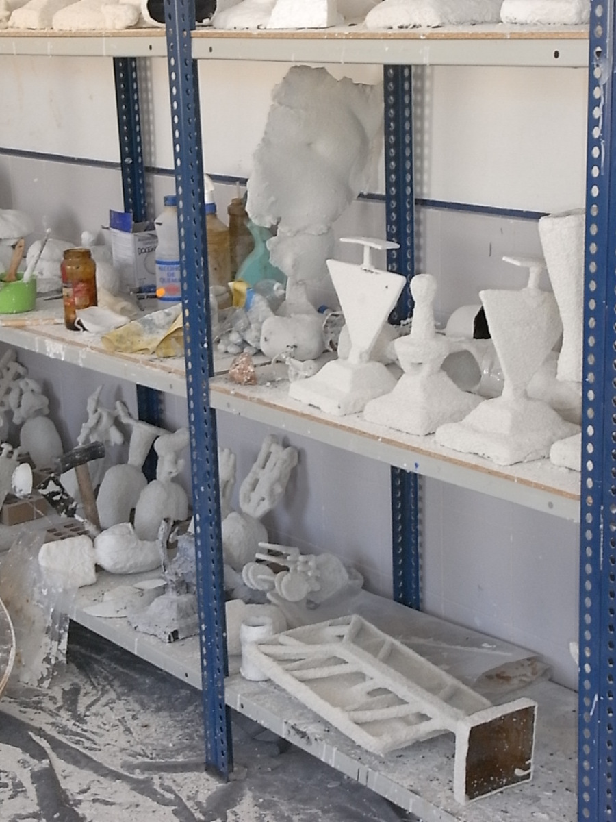 A principios de junio me invitaron a ver el proceso de su trabajo en los talleres de fundición, dirigidos por el profesor David Vila, asistido, claro está, por el mejor jefe de taller de bellas artes de Europa, Rufete, quien es además el ángel de la guarda para todos los que hemos pasado por las naves de trabajo de la Facultad de Altea y seguimos enteros e incólumes.