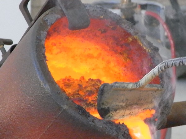 No entro en muchos detalles, pues las fotos hablan por sí mismas cuando llega el momento mágico de efectuar la colada osea la licuación del bronce a 1200 grados