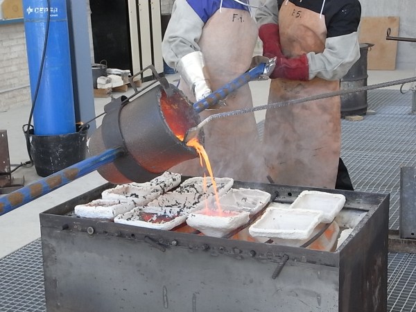Mientras tanto el bronce se enfría y solidifica dentro de la cascarilla, que, pasado un tiempo para su enfriamiento, con la ayuda de un martillo se va separando de la pieza.