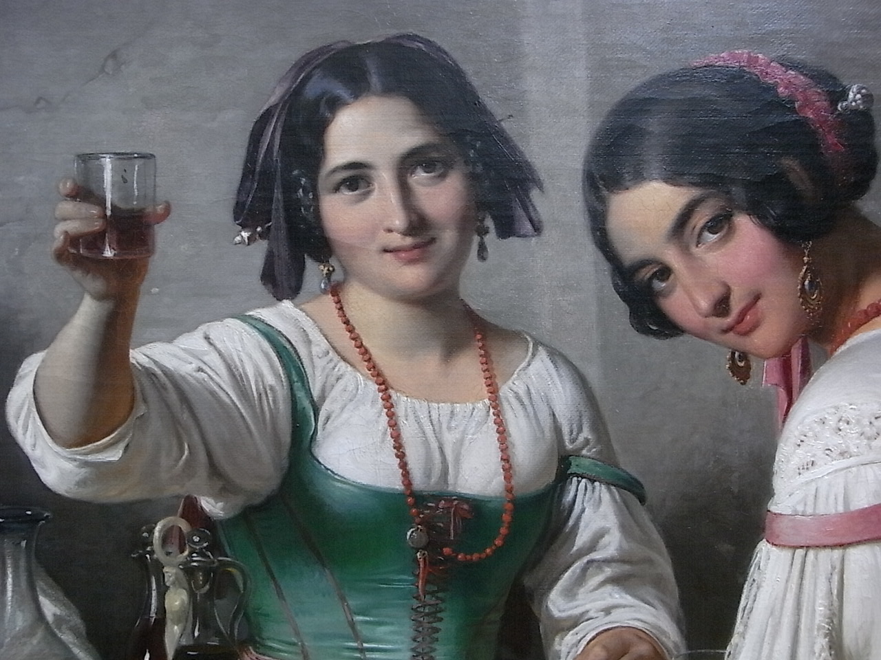 ¡Esto ya es demasiado! ¿En qué estoy yo pensando? ¿Qué hacen aquí estas jóvenes romanas del siglo XIX invitándonos a un vaso de Chianti? Me estoy equivocando de sala. Esta es una pintura de Wilhelm Marstrand (1810-1873)