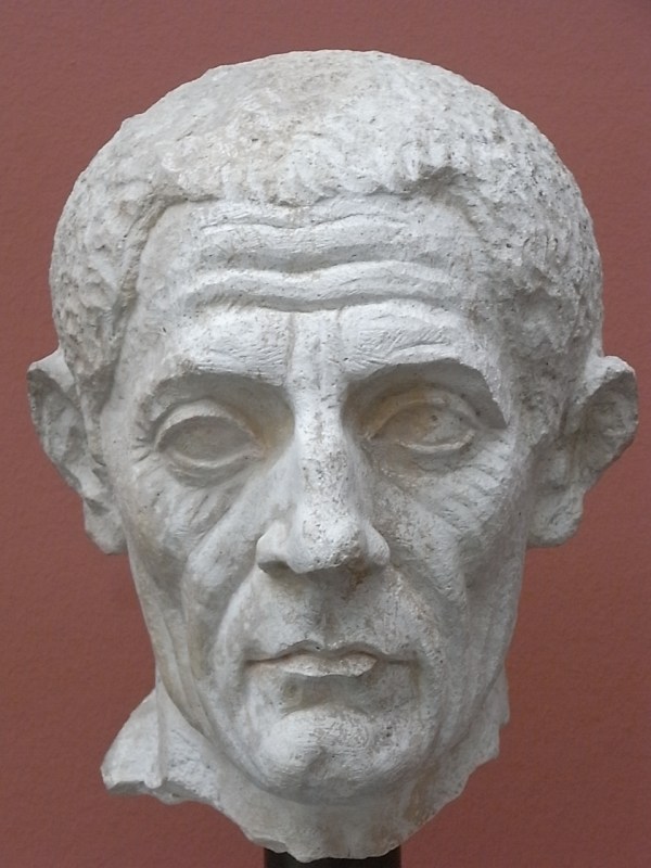 A este militar de rostro severo y barba sobria le debieron obsequiar el busto sus suboficiales el día de su jubilación, allá por la segunda centuria de nuestra era.