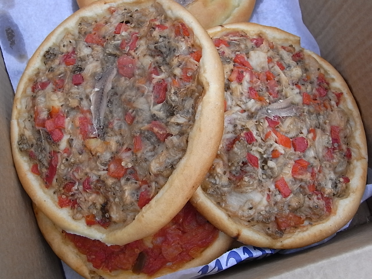 Antes de que oscurezca hacemos una pausa para recuperar fuerzas con uva moscatel y “cocas”, de excelente y crujiente miga coronada de tomate y berenjena o de anchoas, entre otras posibilidades. La coca es diferente de la pizza italiana, ya que es más ligera y reducida de tamaño y el queso no entra en la composición de esta especialidad gastronómica alicantina y valenciana.