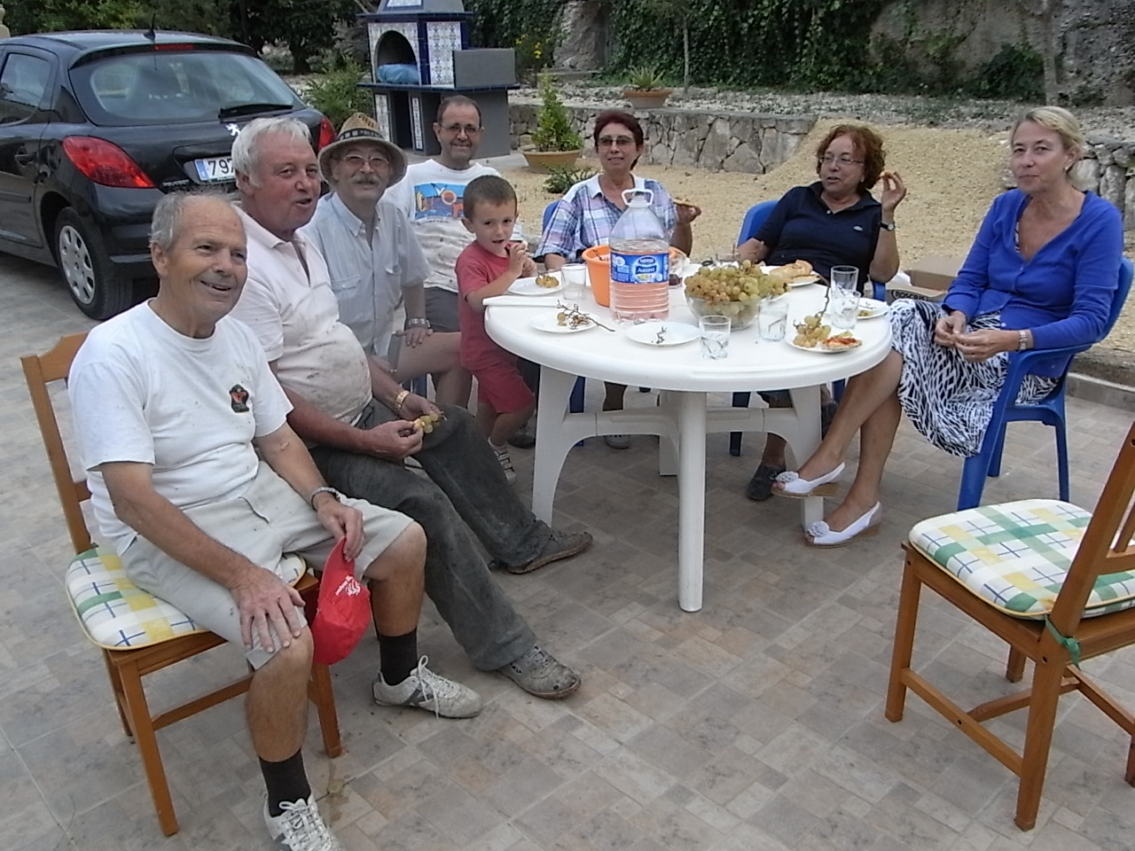 ¡Qué alegría veros a todos por aquí, sobre todo a Miquel, a quien tengo ganas de ver! ¡Magnífico el color rojizo de las parras! Y esas cocas, que por aquí se llaman «de recapte». Un abrazo para todos,