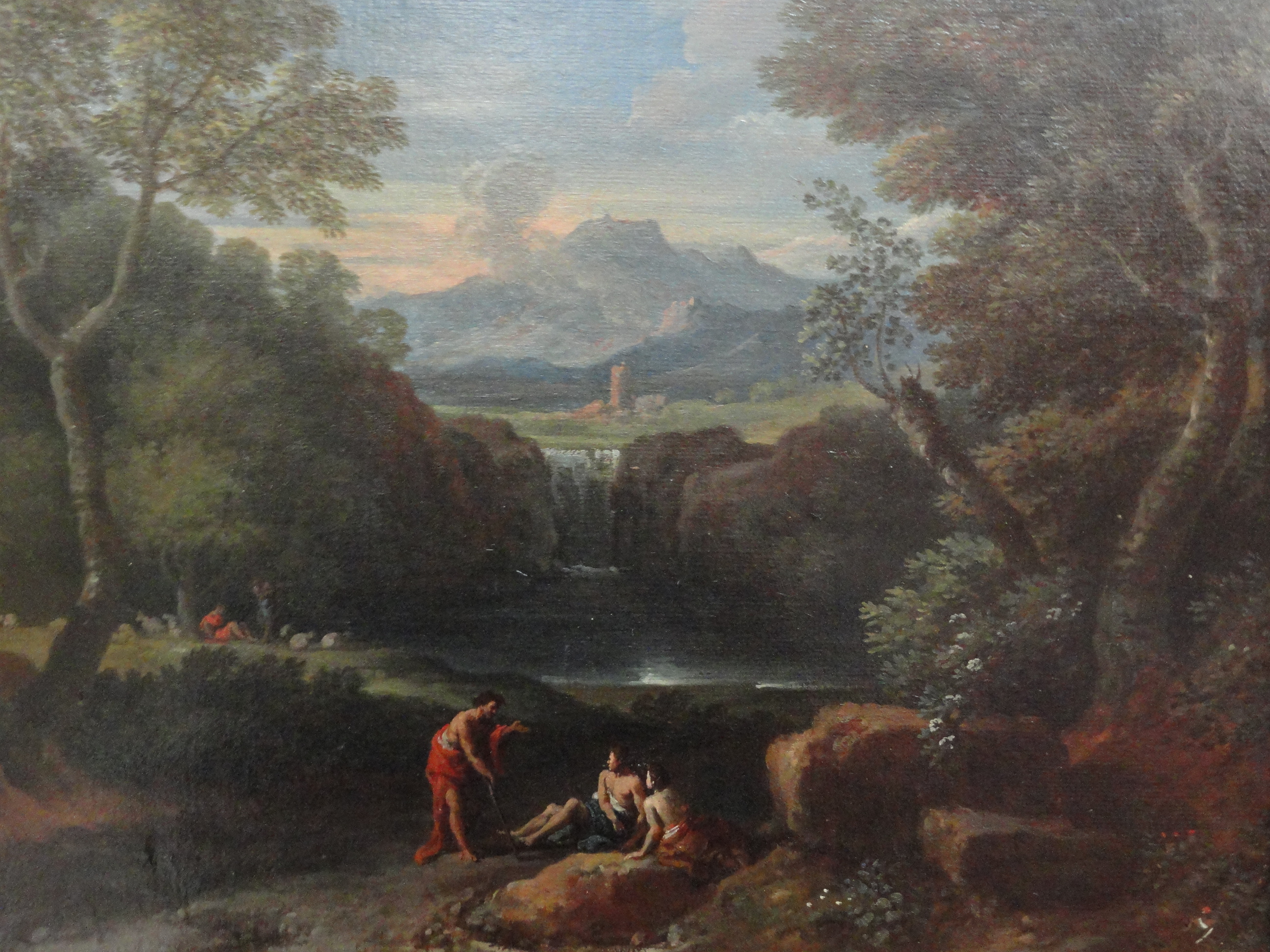 Jan Frans van Bloemen. Paisaje con cascada, lago y figuras. Detalle. Museo Bellas Artes. Valencia. Foto R.Puig