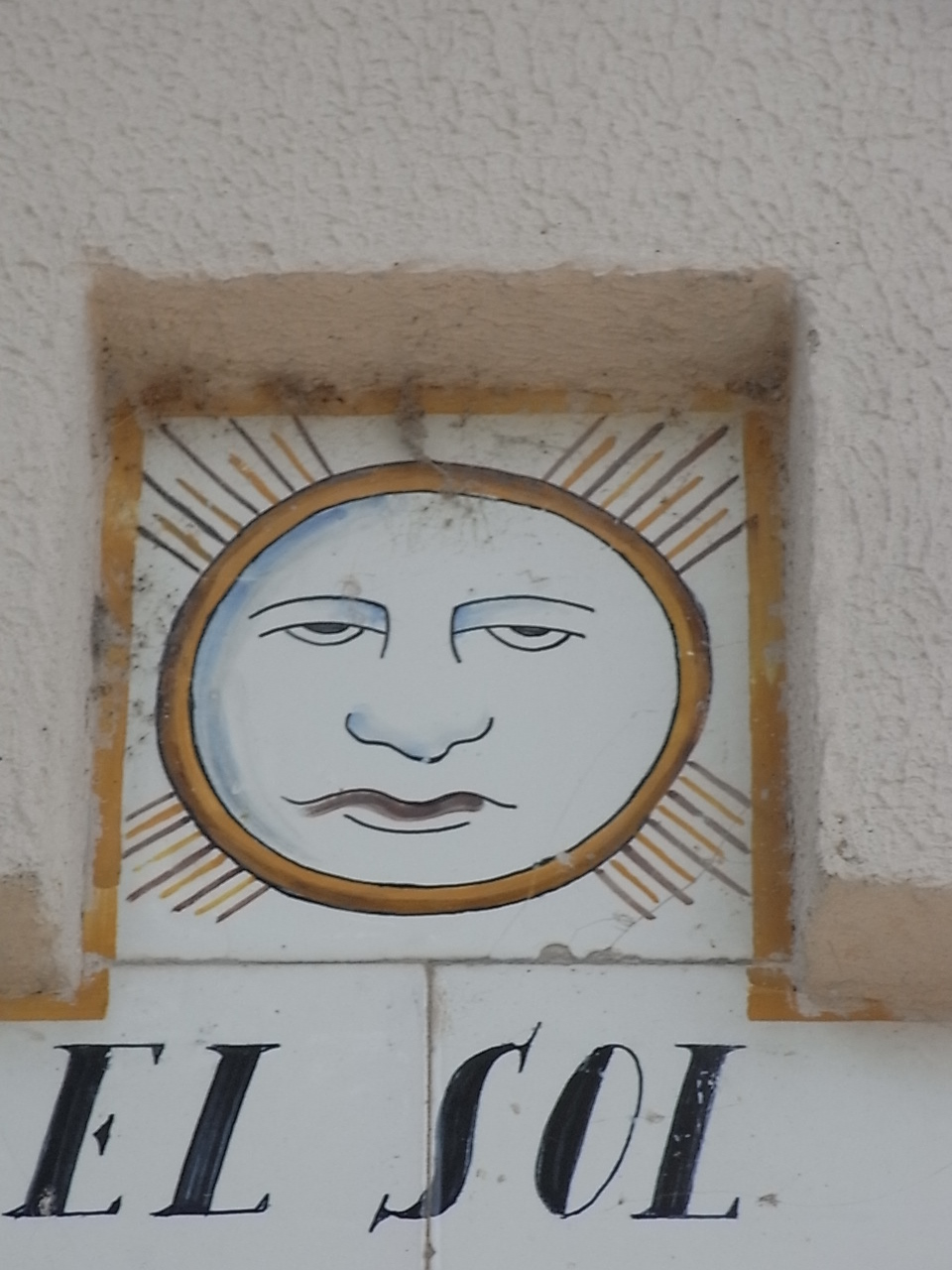 En Sueca hay también un sol mágico, está en la fachada de Nuestra Señora de Sales. Entre los azulejos que ilustran las leyendas de la Pasión hay uno del astro rey, no triunfante como el de los egipcios, no solicitando sacrificios humanos como el de los aztecas, sino entristeciéndose por el más famoso de los sacrificados.